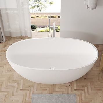 67 inch Freestanding Bathtub with Overflow and Pop-up Drain, Classic Oval Shaped Stone Resin Freestanding Soaking Tubs, Solid Surface Stand Alone Tubs, White