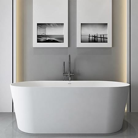 71" Stone Resin Freestanding Bathtub, Contemporary Oval Solid Surface Soaking Stand Alone Tub, Matte White, Drain & Overflow Included 8816-1800