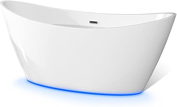 Empava 59 in Acrylic Freestanding Bathtub 7 Color Changing LED Lights Soaking Tub with Wireless Remote Control, 59 Inch, Glossy White