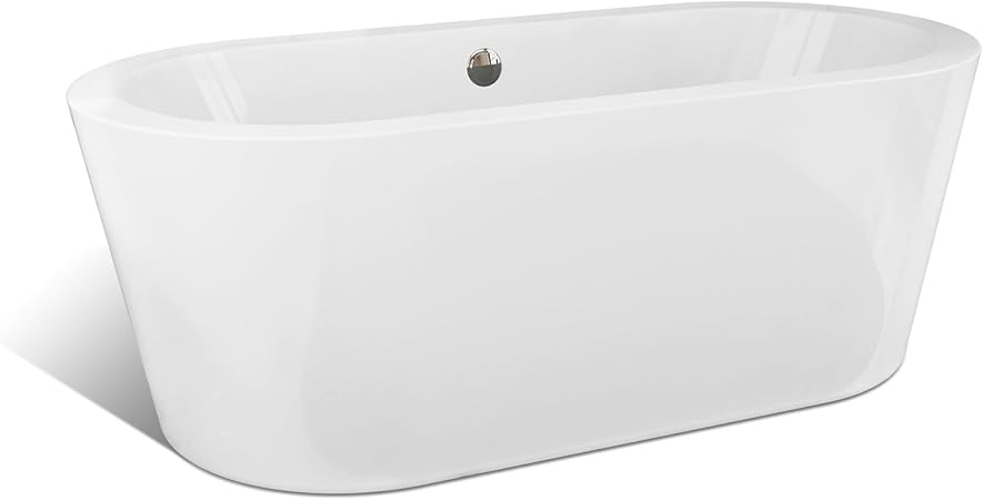 Empava 59_„� Acrylic Freestanding Bathtub Contemporary Stand Alone Soaking Tub with Overflow and Drain, FT1505, Luxury White