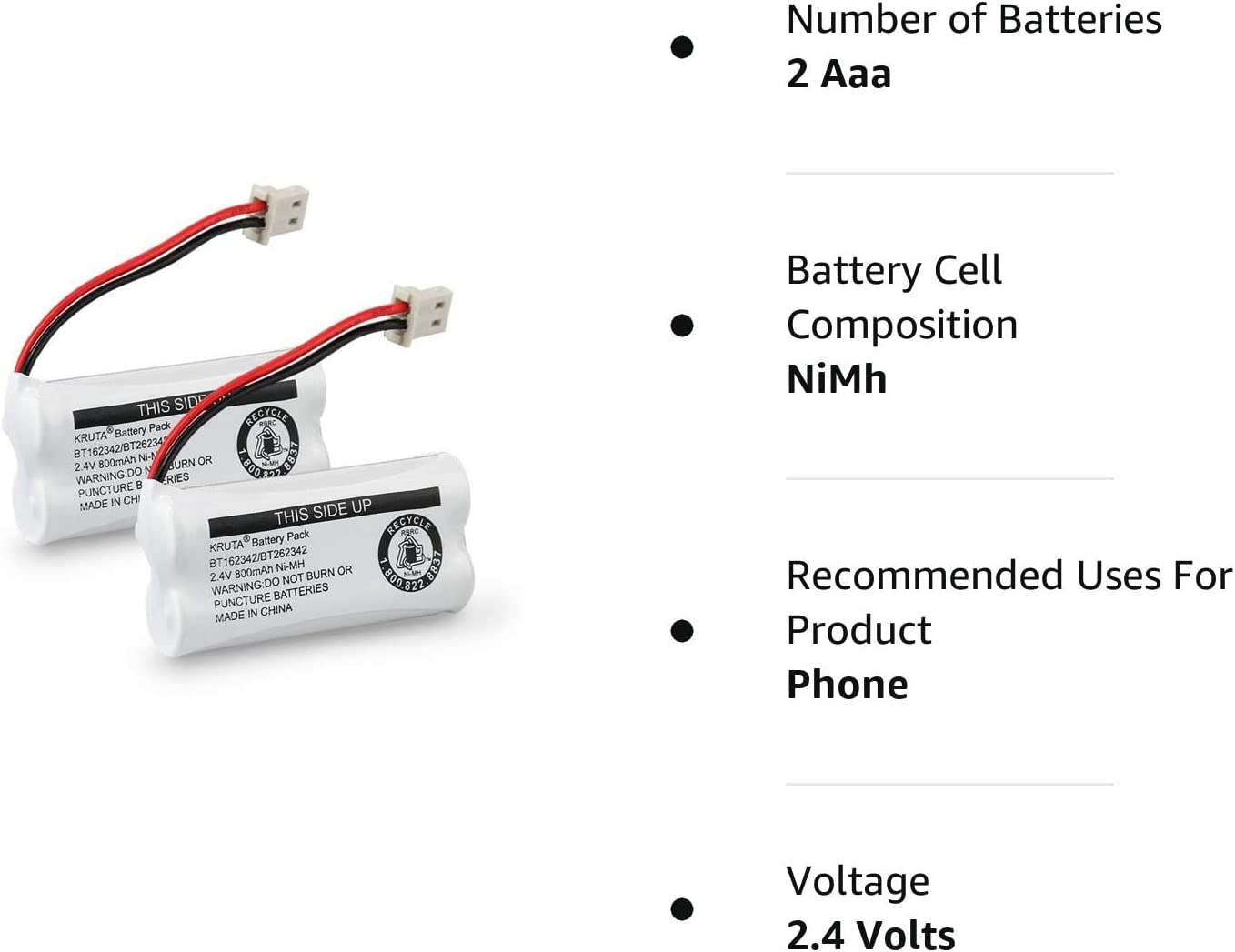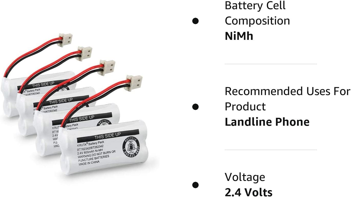 Kruta BT162342/BT262342 2.4V 800mAh Ni-MH Battery Pack for Vtech AT&T Cordless Telephones (4-Pack)