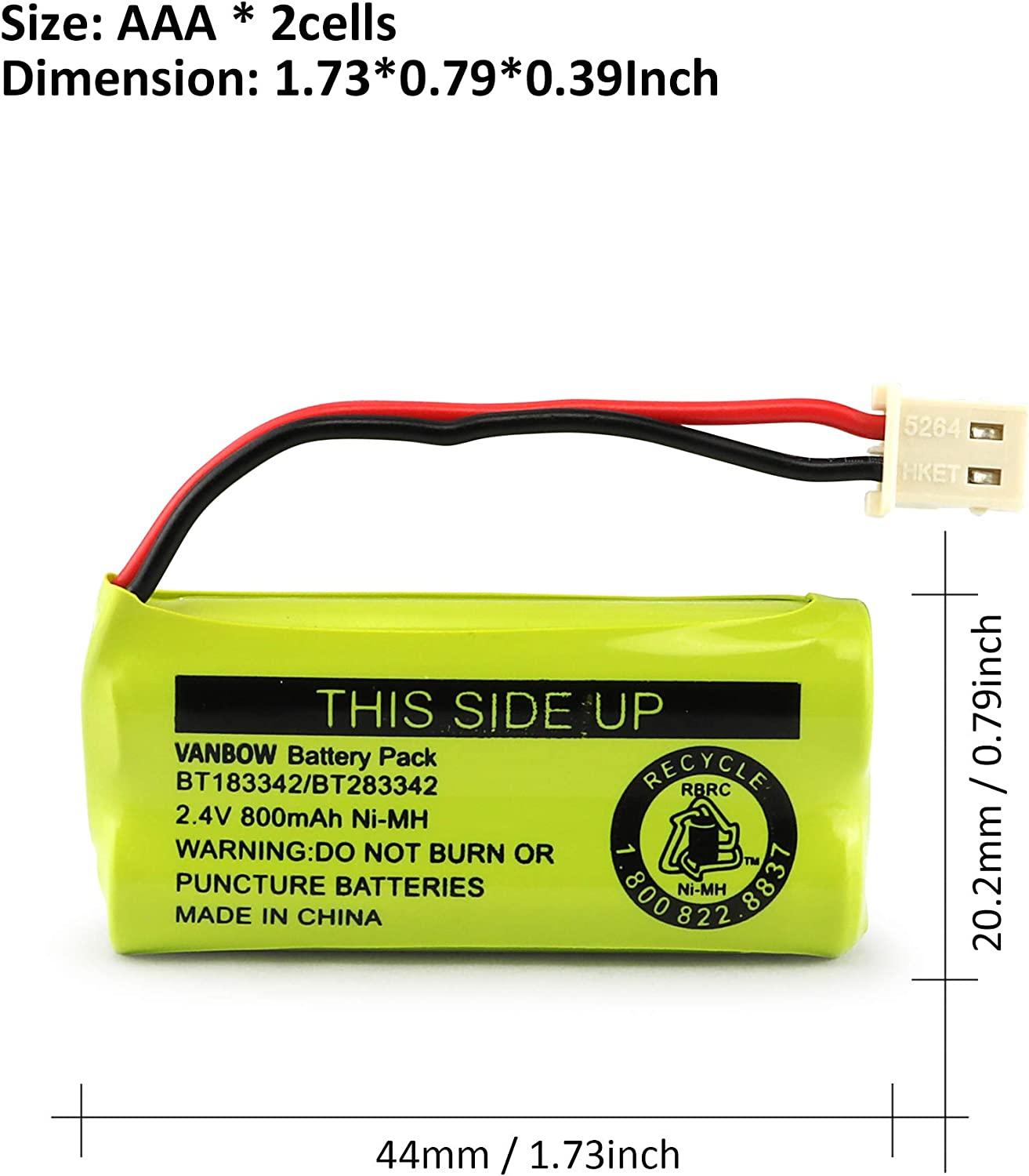BT183342/BT283342 2.4V 800mAh Ni-MH Battery Pack, also Compatible with AT&T VTech Cordless Phone Battery Pack BT166342 BT266342 BT162342 BT262342 CS6709 CS6609 CS6509 CS6409 EL52100 EL50003