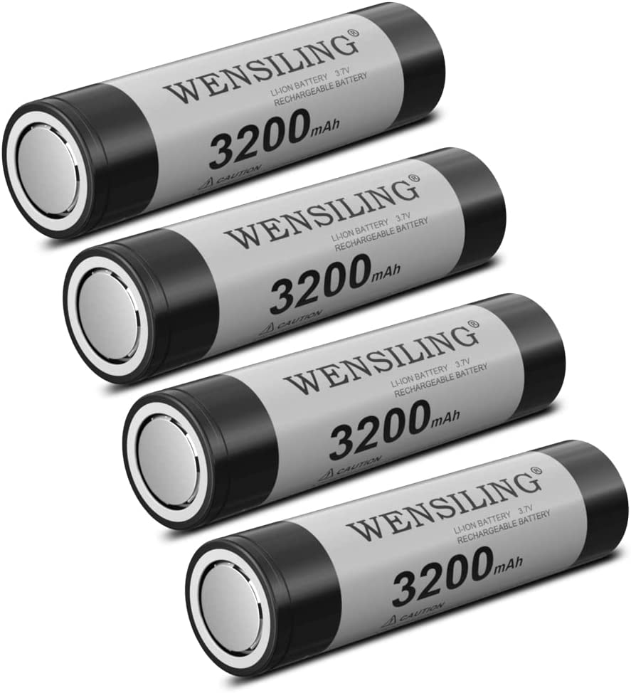 WENSILING 4 Pcs Battery 3.7V 3200mAh Flat Top Batteries Rechargeable for Flashlight, Camera, Small Fan