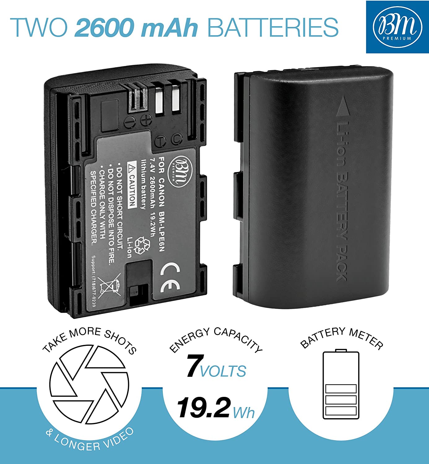 • Includes: Qty 1 Vivitar Battery Grip for Canon EOS 70D, EOS 80D, EOS 90D + 2 BM Premium LP-E6 Batteries