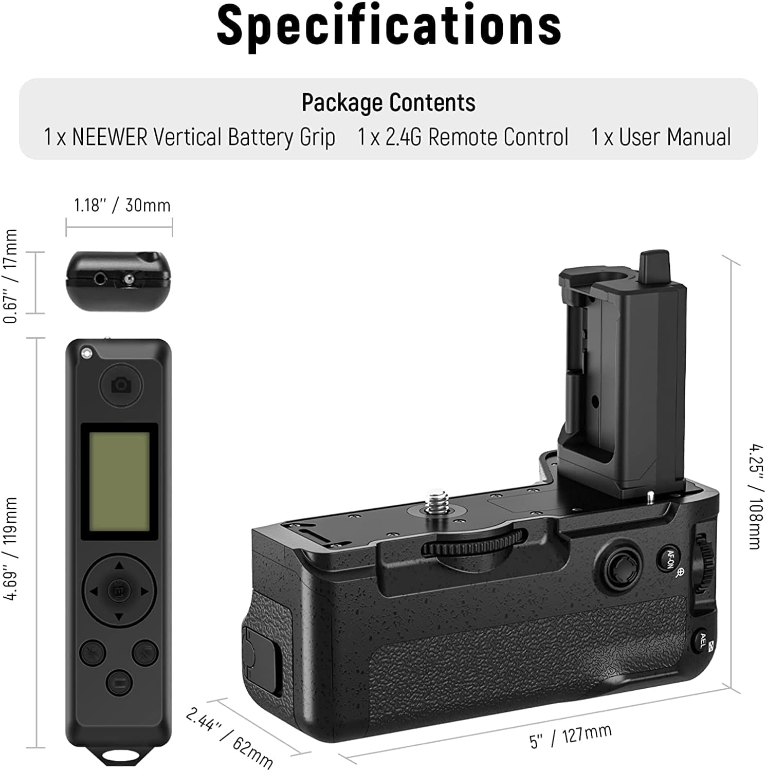 NEEWER Vertical Battery Grip with 2.4G 131ft/40m LCD Remote Control, Replacement for VG-C4EM, Works with NP-FZ100 Battery, Compatible with Sony a7R IV a9II a7 IV a7S III A1 Cameras BG A7IV