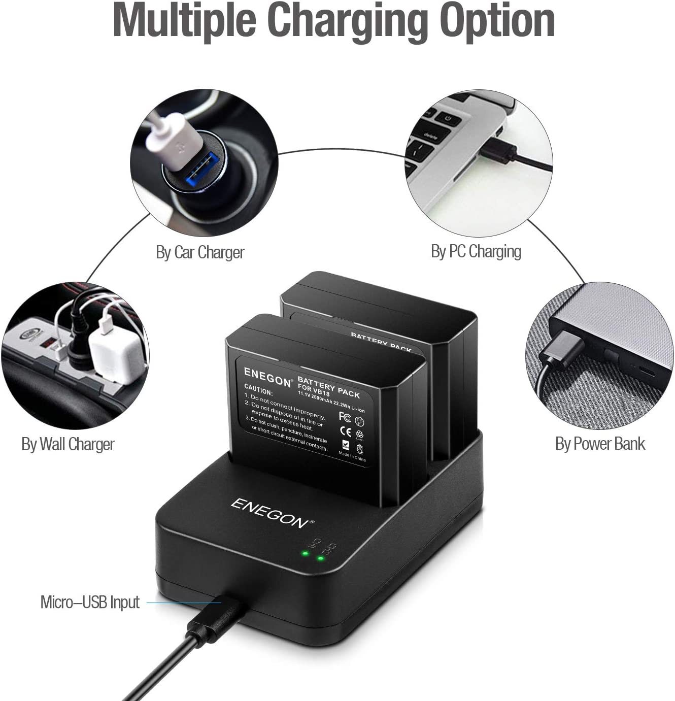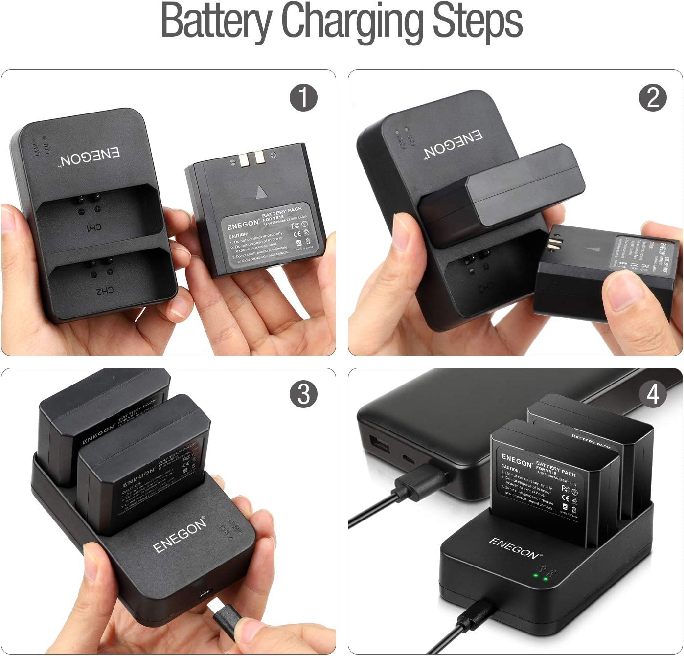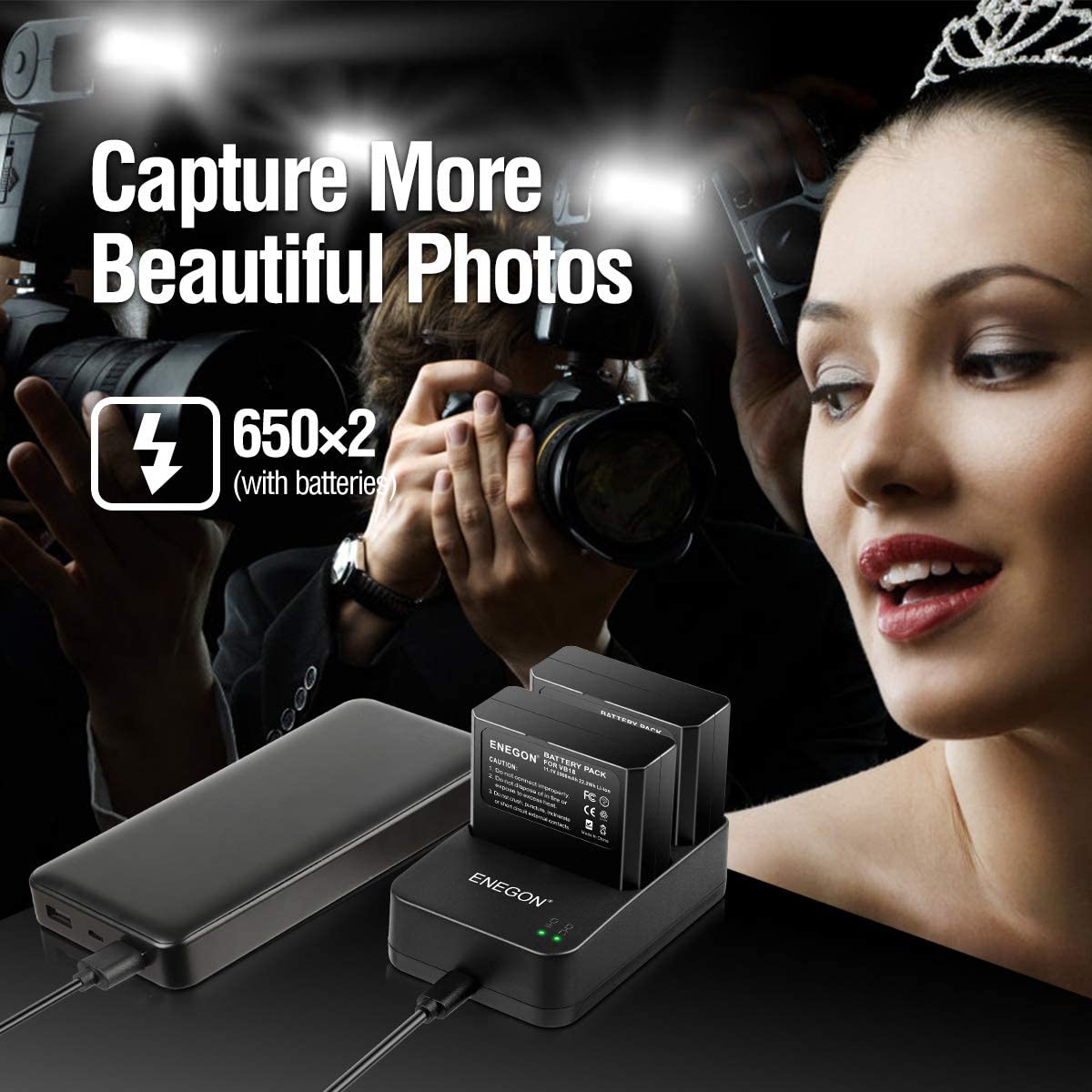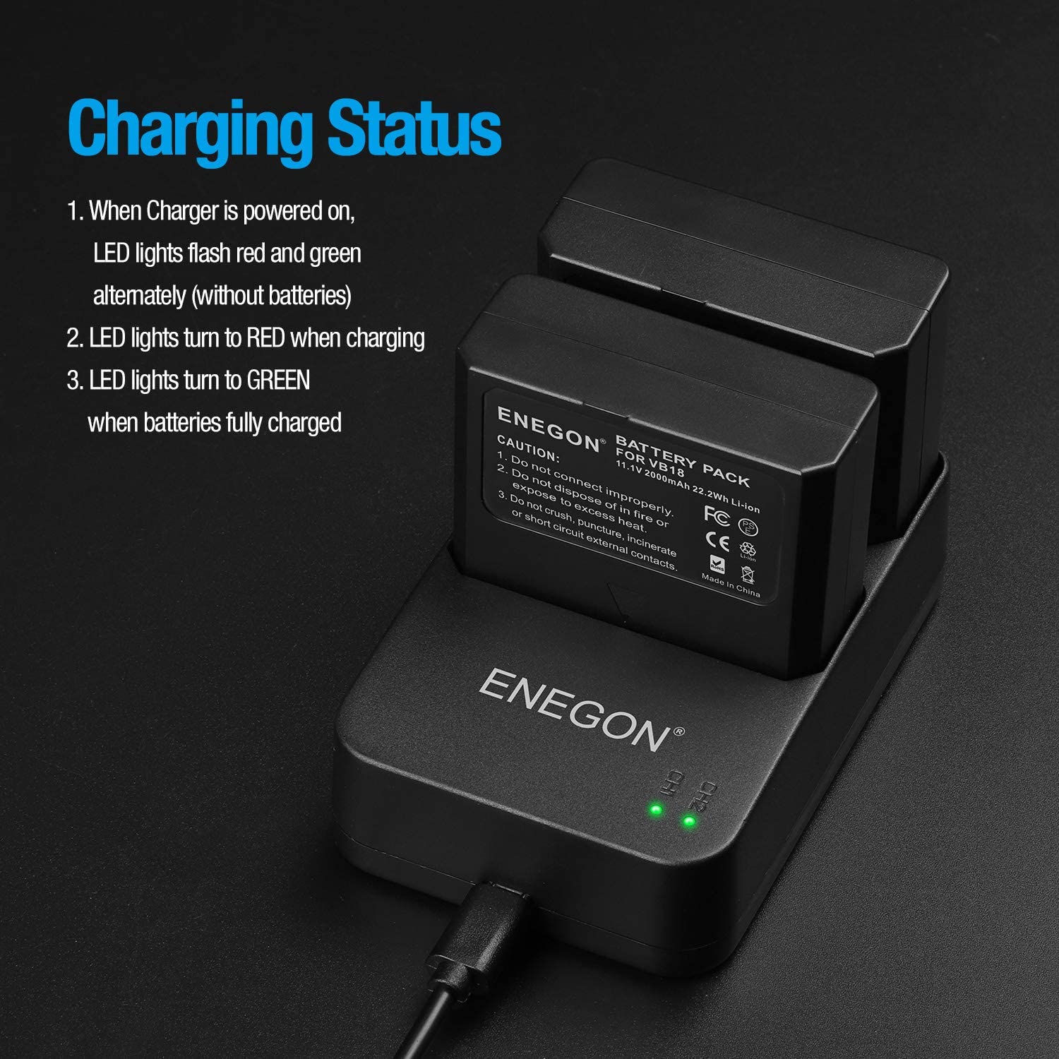 • Package includes: 2 * Battery; 1 * Dual USB Charger; 1 * USB Charging Cord with 18-Month ENEGON warranty