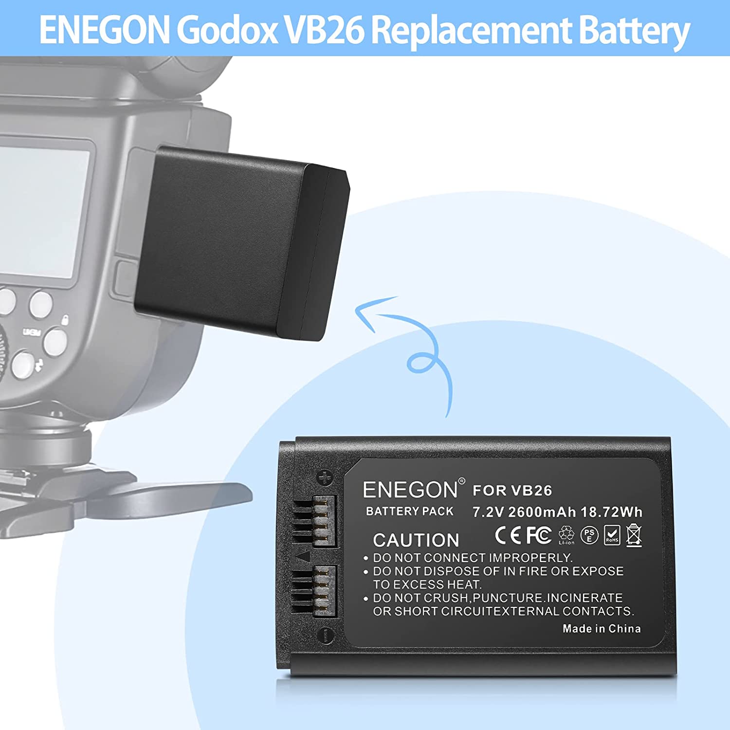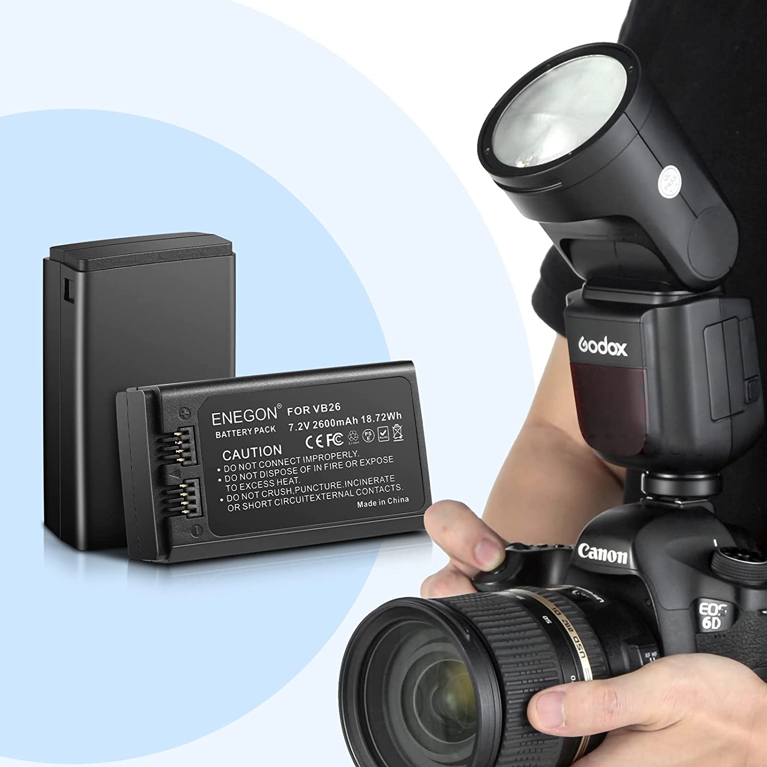 VB18, ENEGON Li-ion Battery VB18 (2-Pack) & Dual USB Charger for Godox V850 V850II V860 V860C V860N V860II V860II-N V860II-C V860II-S V860II-F V860II-O and Neewer TT850 TT860 Speedlite Flash