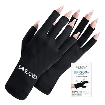 SAVILAND UV Gloves for Nails: Professional UPF200+ Fingerless UV Light Gloves for Gel Manicures Anti UVA & UVB 999+ Glove for Gel Nail Lamp (Black)