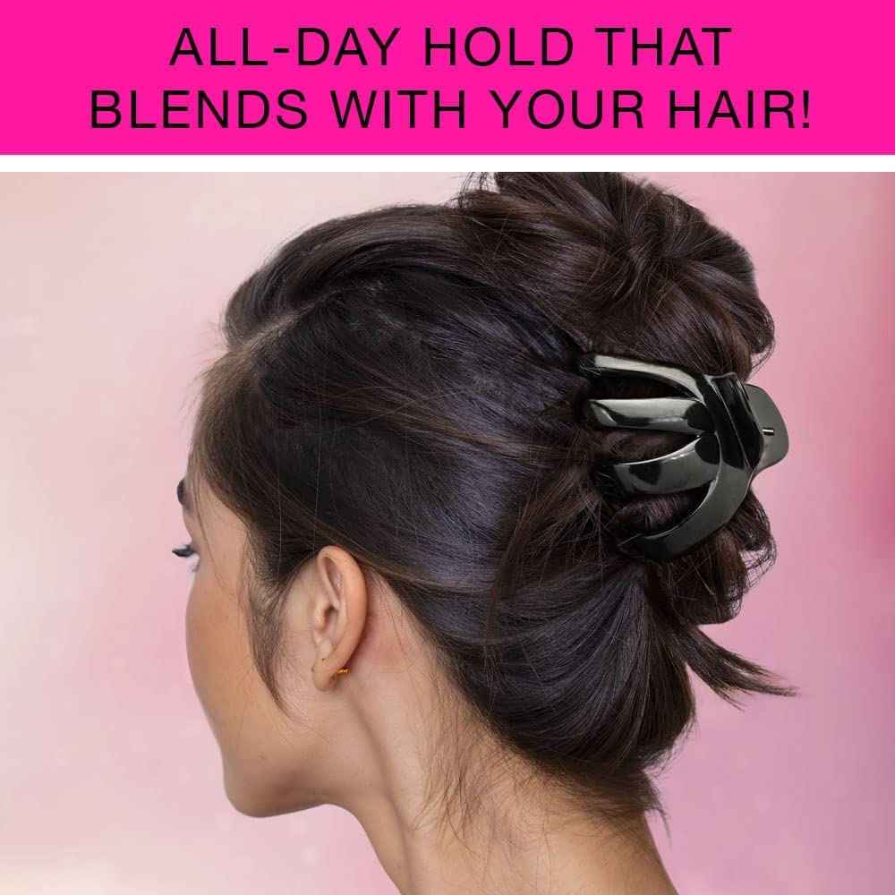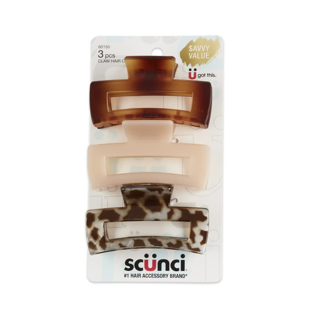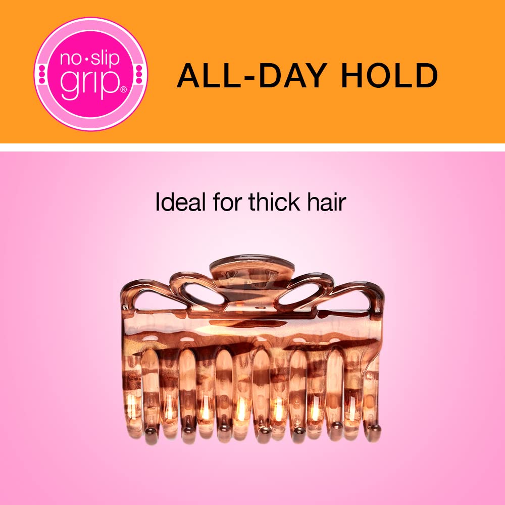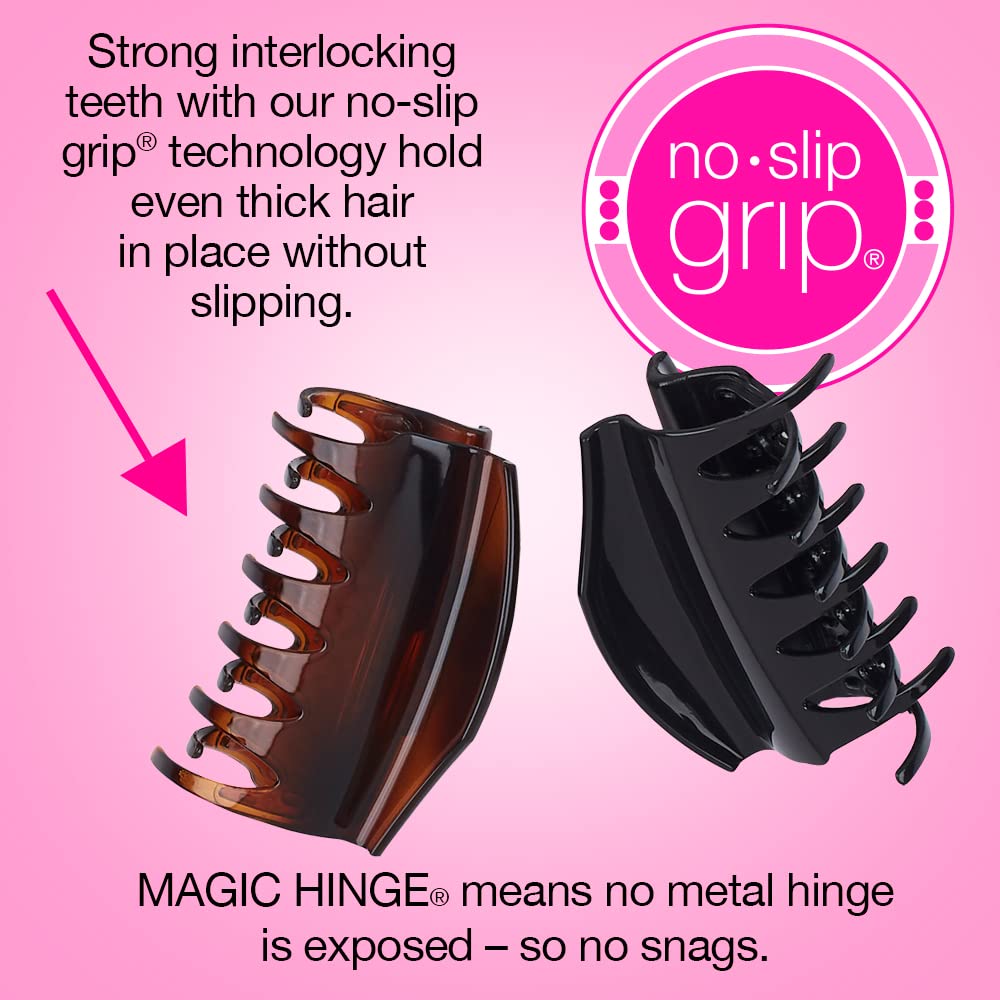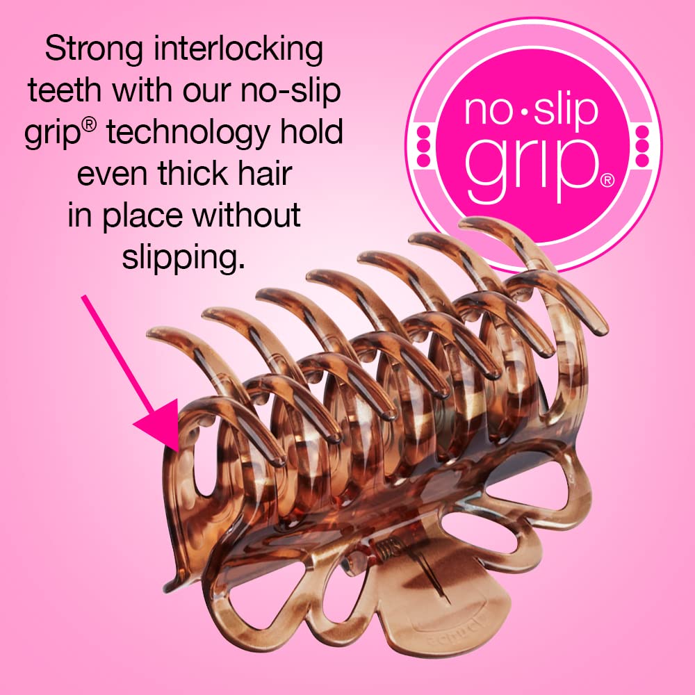 Say goodbye to bad hair days with Scünci No-Slip Grip® Octopus claw hair clips. From the makers of the original scrunchies, these no slip hair clips are your answer for quick, easy-to-do hairstyles. The simply smart design allows you put your hair up effortlessly for distraction-free looks. All you have to do is twist, turn, and tuck, and scünci octopus clips will do the rest. Don’t be fooled by their small size – these 8-pronged clips are strong enough for all-day hold. Simply open the clip and the special interlocking teeth will work their magic, keeping your long thick hair in place for as long as you want. The No-Slip Grip® technology stays put to prevent strays and fallout strands, even on thick curly hair. The unique rounded design fits for more hair than a traditional hair clip, making them just right for long hair or thick hair. And to ensure the prongs stay where they’re supposed to, they’re lined with a special no-slip coating. Strong enough to hold your up-do, but small enough to fit in your purse. Whether you are at work, out for the evening, or just hanging out at home, it’s always a good idea to have a Scünci hair clip on hand. These clever little clips are also just the right tool when it comes to styling, cutting, or coloring hair. Easily section your hair so you can achieve the hairstyle you want—perfect for straightening, curling, or braiding. These useful clips also come in handy for any other beauty routines: keep one by the sink or on the vanity to use while washing your face, while wearing a face mask, or applying makeup. You never know when you’ll need to put your hair up, and with Scünci, you’ll always be ready.