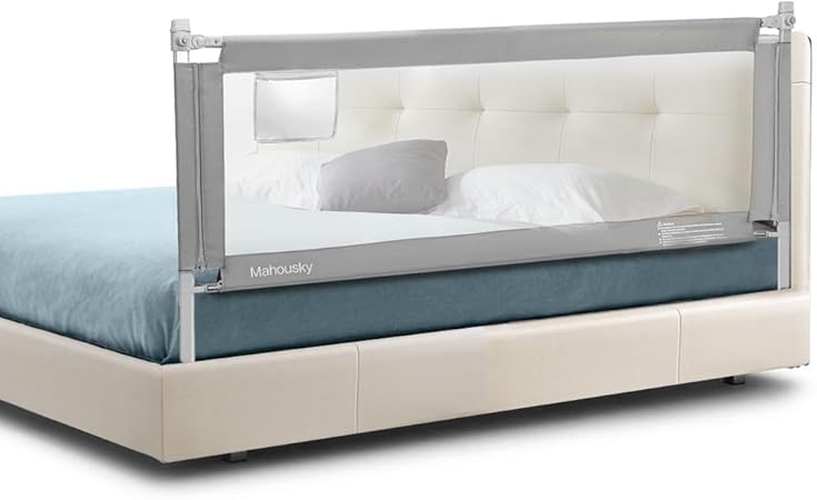 Bed Rail, Height Adjustable Toddler Protection Guard with Storage Pocket and Double Safety Lock, Vertical Lifting Anti-Fall Beds Mesh Guardrail for Toddlers Kids (74.8 inch(1 Side))
