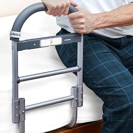 Lunderg Bed Rails for Elderly Adults Safety - with Motion Light & Non-Slip Handle Bar - Bed Railings for Seniors & Surgery Patients - The Bedside Support Assist Cane Makes Getting in & Out Much Easier