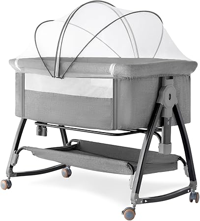 Bedside Crib, 3 in 1 Bassinet with Quick Height Adjustment and Mosquito Nets, Easy to Fold, Portable Beside Bassinet with Golden Triangle Structure, CPSC Certification