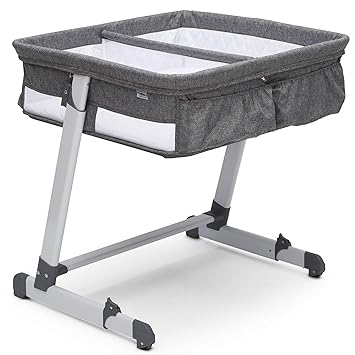 Simmons Kids By The Bed City Sleeper Bassinet for Twins - Adjustable Height Portable Crib with Wheels & Airflow Mesh, Grey Tweed
