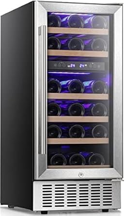 Antarctic Star 15" Wine Cooler Under Counter Beverage Refrigerator Beer Mini Fridge 28 Bottles Dual Zone Built-in Freestanding Stainless Steel Double-Layer Tempered Glass Door