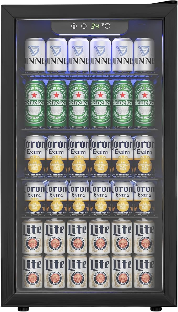 Beverage Refrigerator and Cooler, 126 Can Mini fridge with Plastic Door, Beverage Cooler with Digital Temperature Display & Adjustable Shelves for Soda Beer or Wine, Black