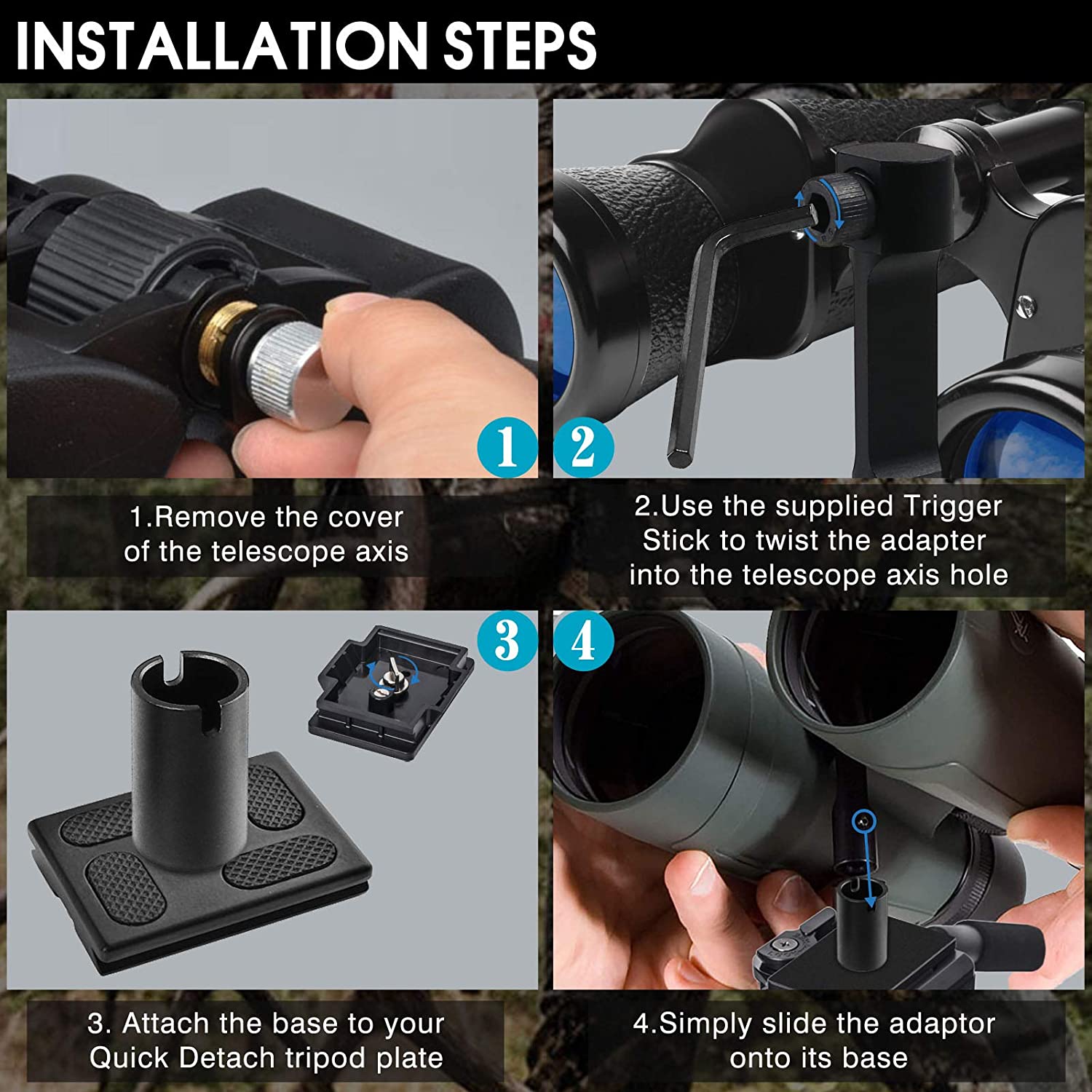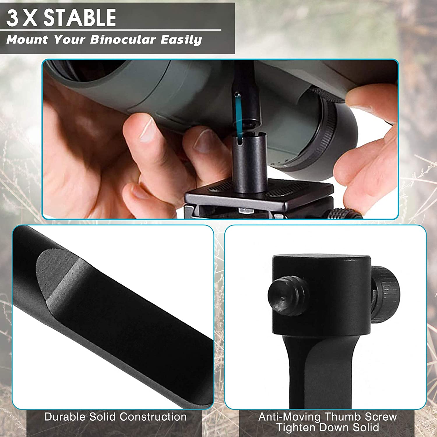 • 【More Stable To View】Twin 1/4" thread connections to tripod, provides a rigid and eliminate image-shake in high-power binoculars. It helps stabilize when glassing and ranging long distances.This are superb steady ideal adapter to increase viewing pleasure.