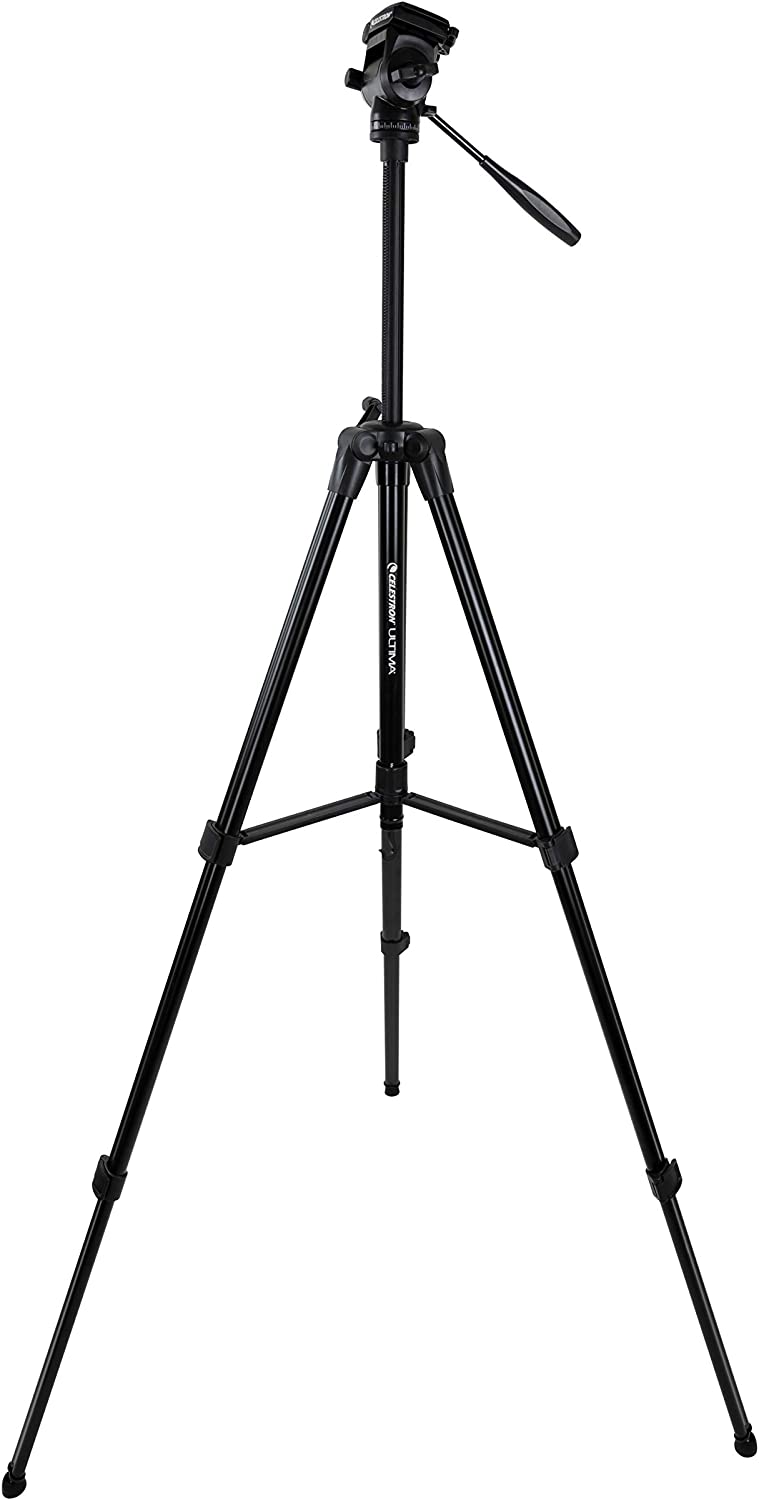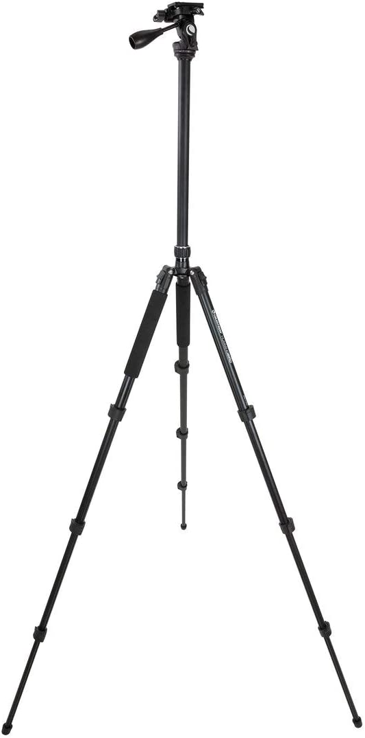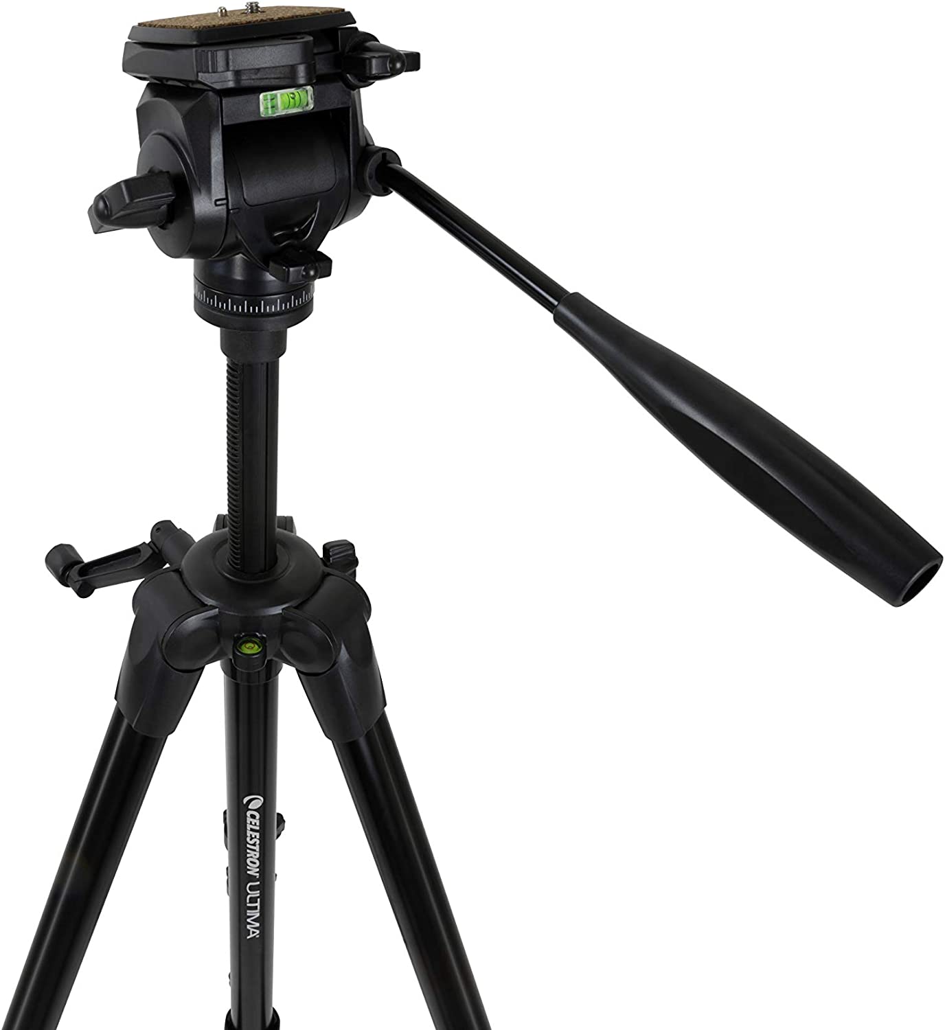 The Ultima tripod is an excellent choice for those seeking a lightweight yet stable platform for a spotting scope, binocular or camera. With three leg sections and an adjustable center column, the tripod can be set in multiple configurations to get the exact height or stance needed for your terrain and conditions. Use the panning handle and tension knob to scan across the horizon in smooth motions and follow your subject as it moves. The Ultima is the perfect tripod for any outdoor excursion from bird watching to stargazing and everything in between. Quick-Release Mounting PlateAttach a wide range of optical and photographic equipment to your Ultima tripod in seconds with the quick-release mounting plate. This broad, square platform with protective padding is ideal for attaching binocular adapters, spotting scope mounting feet, camera gear, and more. To up your viewing game, the platform also tilts up to 90° with a lock knob to secure it in place at any angle. For peace of mind, the quick-release plate has a safety mechanism that prevents it from sliding completely out of the pan head without pushing the release button. Telescoping Center ColumnThe center column of the Ultima tripod can be extended to raise the tripod head when additional height is needed. To adjust the center column, twist the lock-knob and move the center column to the desired height. The maximum height when the tripod is fully extended is just under 67. 7”. At the bottom of the center column, there is a retractable balance hook. This simple device can make all the difference in the stability of your tripod, especially on windy days. Just hang something heavy from the hook like a backpack and you’ll be amazed at the difference. When the hook is not needed, it retracts up into the center column to stay neatly out of the way. Protective Carrying CaseTake your tripod anywhere in its soft woven case with comfortable shoulder strap. When not in use, the case is the perfect place to store your tripod.