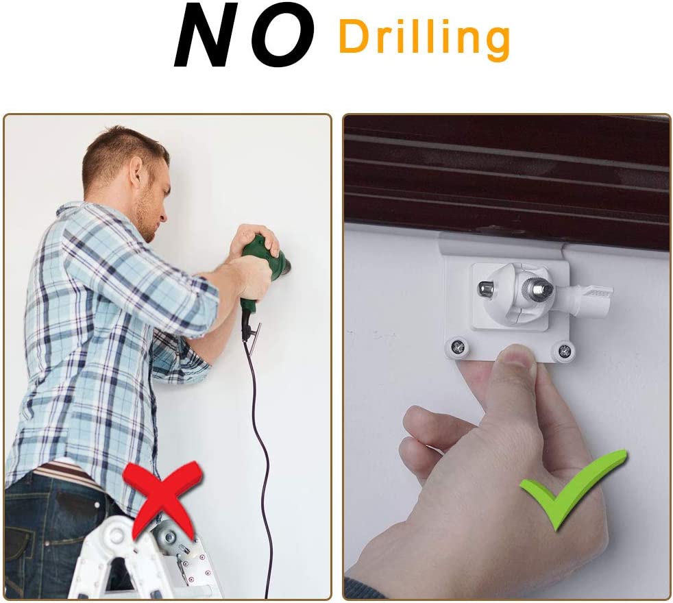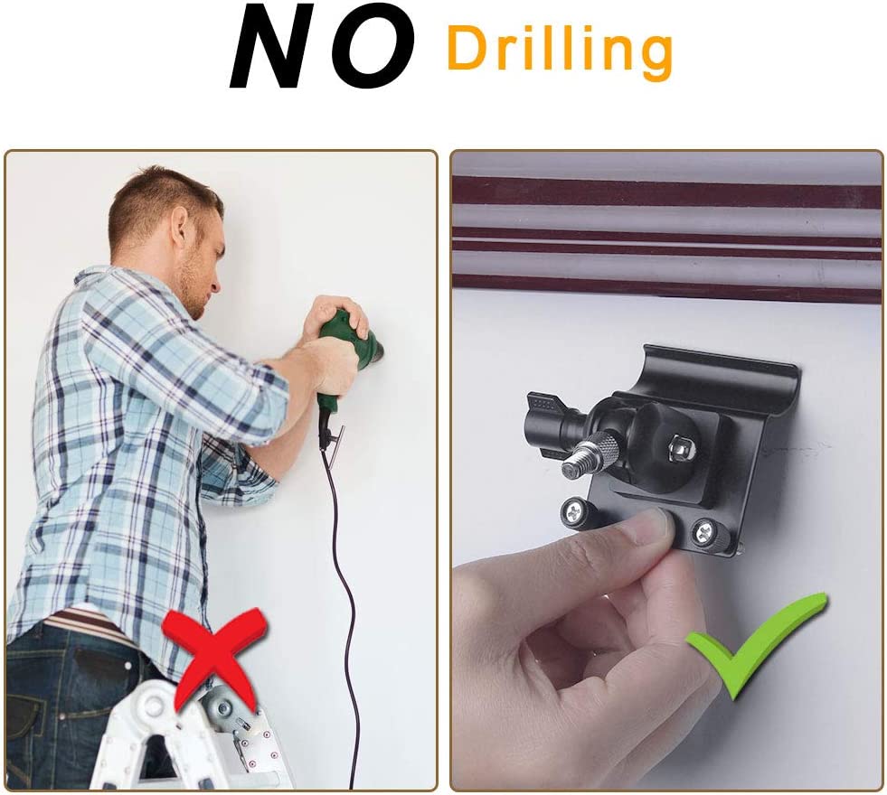 • NO HOLES OR TOOLS REQUIRED. Very easy to put up and move device to get the best positioning.