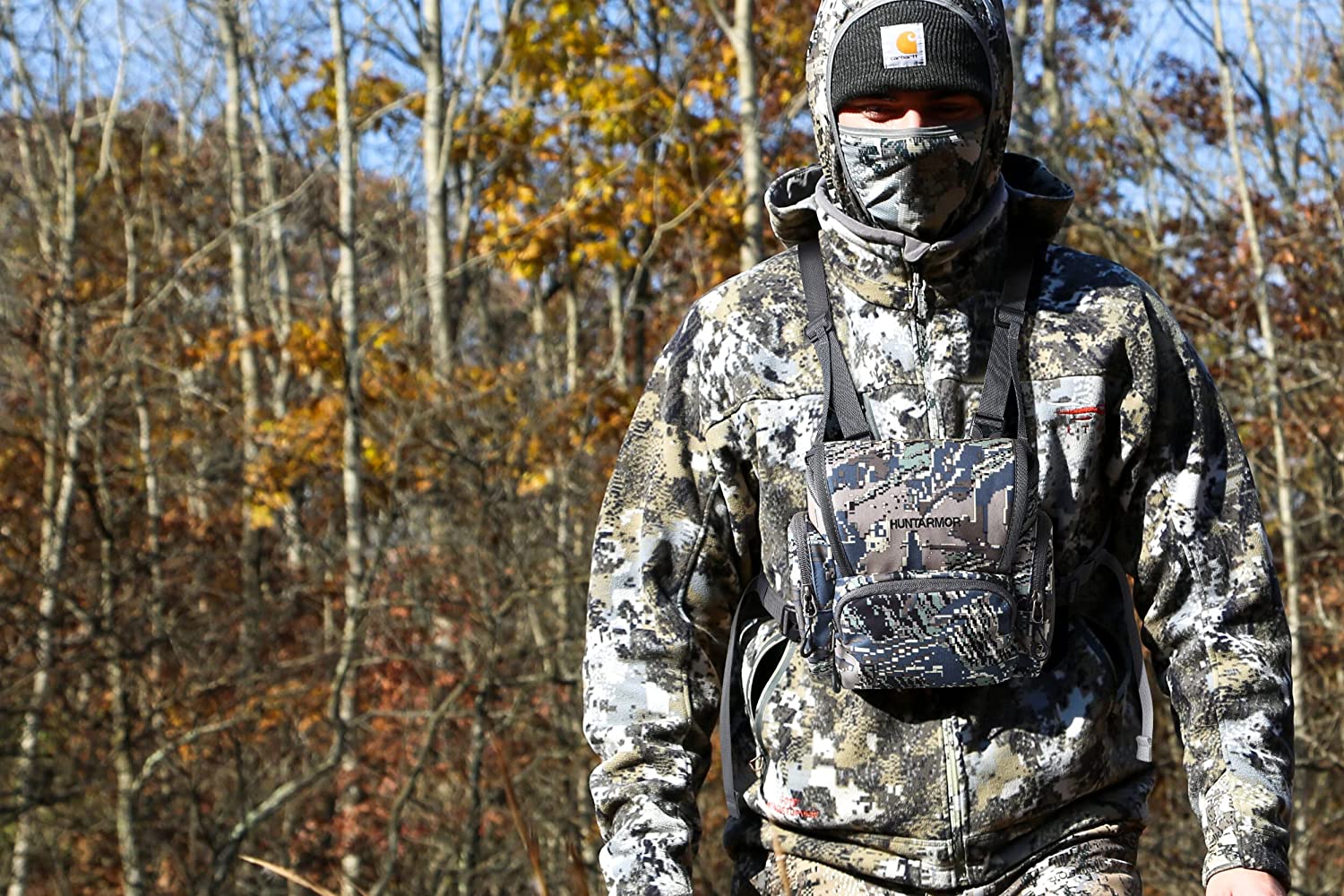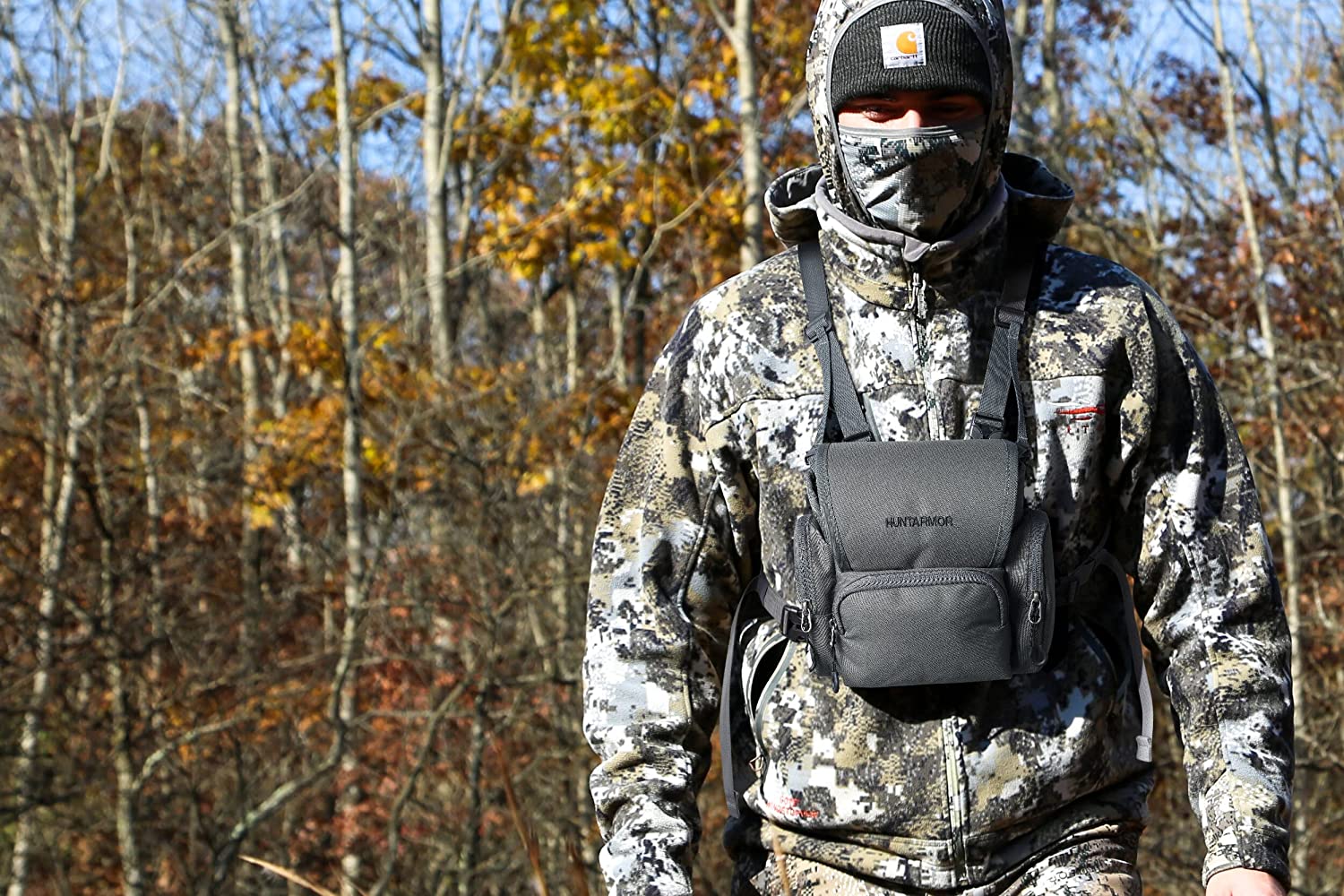 HUNTARMOR Binocular Harness Chest Pack: Hunting Bino Harness with Rangefinder Pouch & Binoculars Bag, Durable Lightweight Portable Binocular Pack for Hunting, Hiking and Shooting