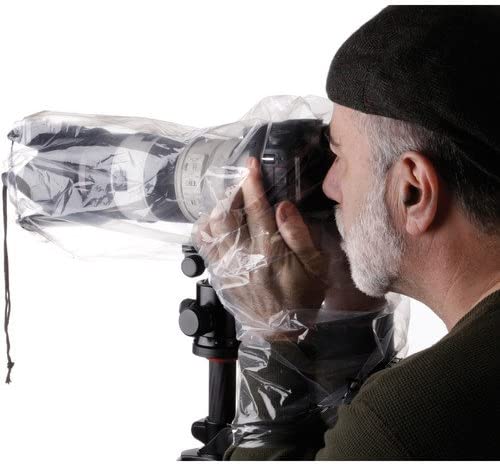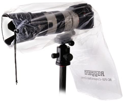 The RC-P18 Rain Cover for DSLR with Lens up to 18" from Ruggard is an easy to use way to protect your DSLR and lens from water, dust, dirt and mud. The cover will accommodate a DSLR with a lens up to 18" long and 7" wide. The polyethylene cover has openings for your camera and lens that are secured with drawstrings. The cover also has enough space to accommodate your lens hood.