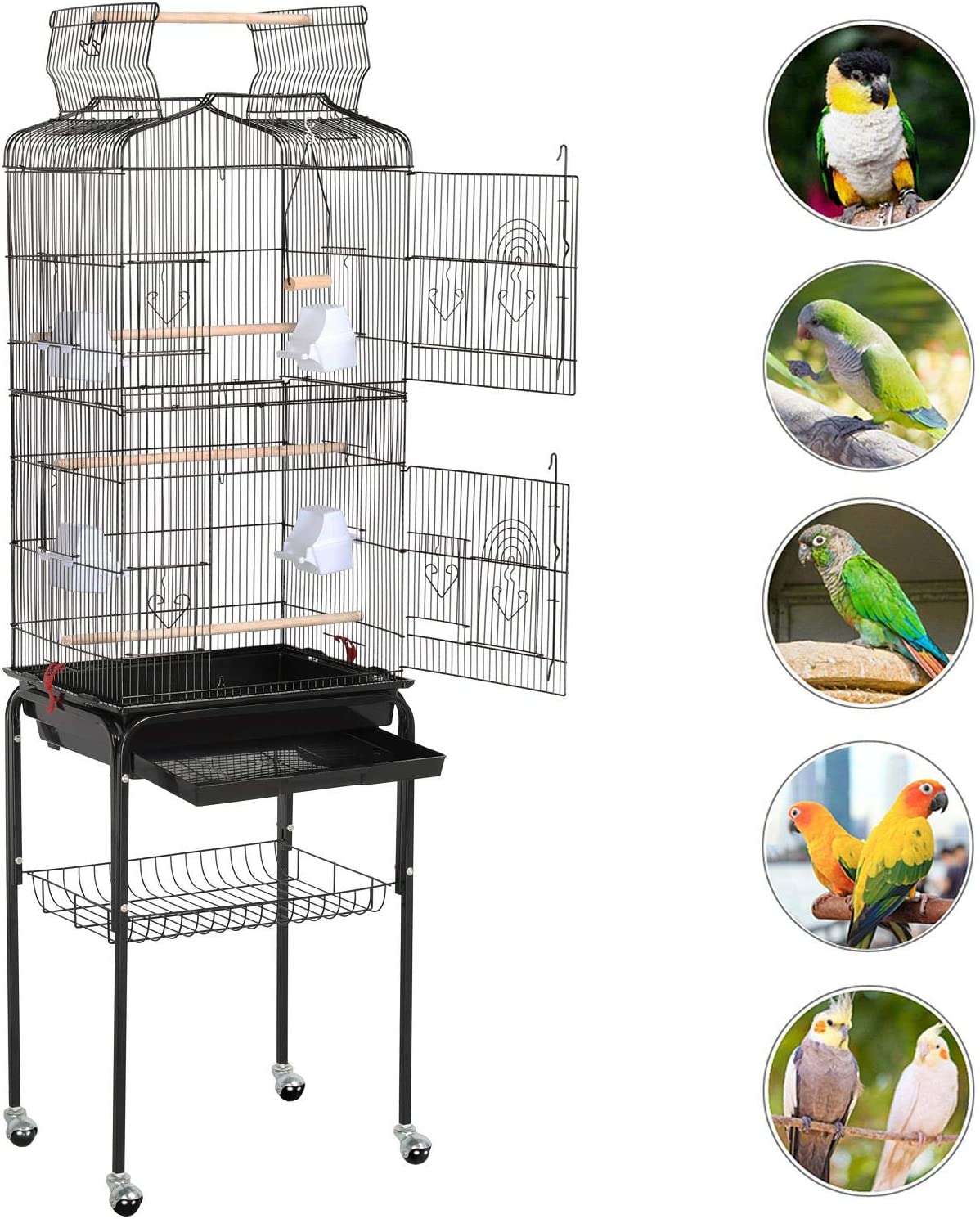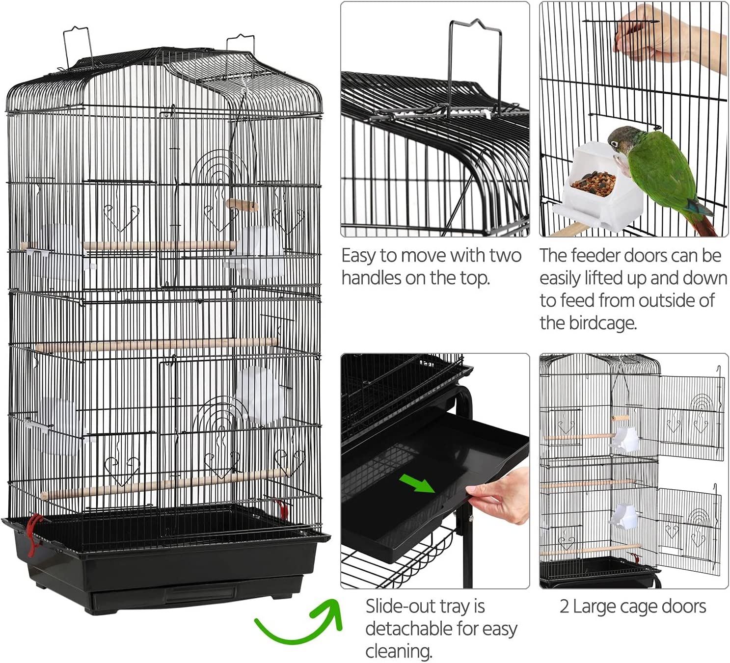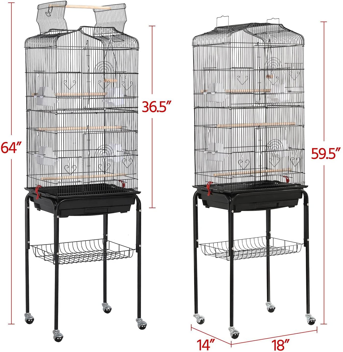 Yaheetech 64-inch Play Open Top Medium Small Parrot Parakeet Bird Cage for Lovebirds Finches Canaries Parakeets Cockatiels Budgie Parrotlet Conures Bird Cage with Detachable Rolling Stand