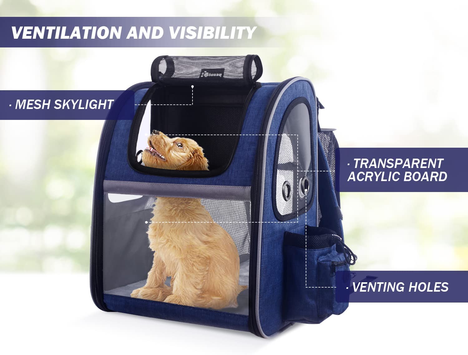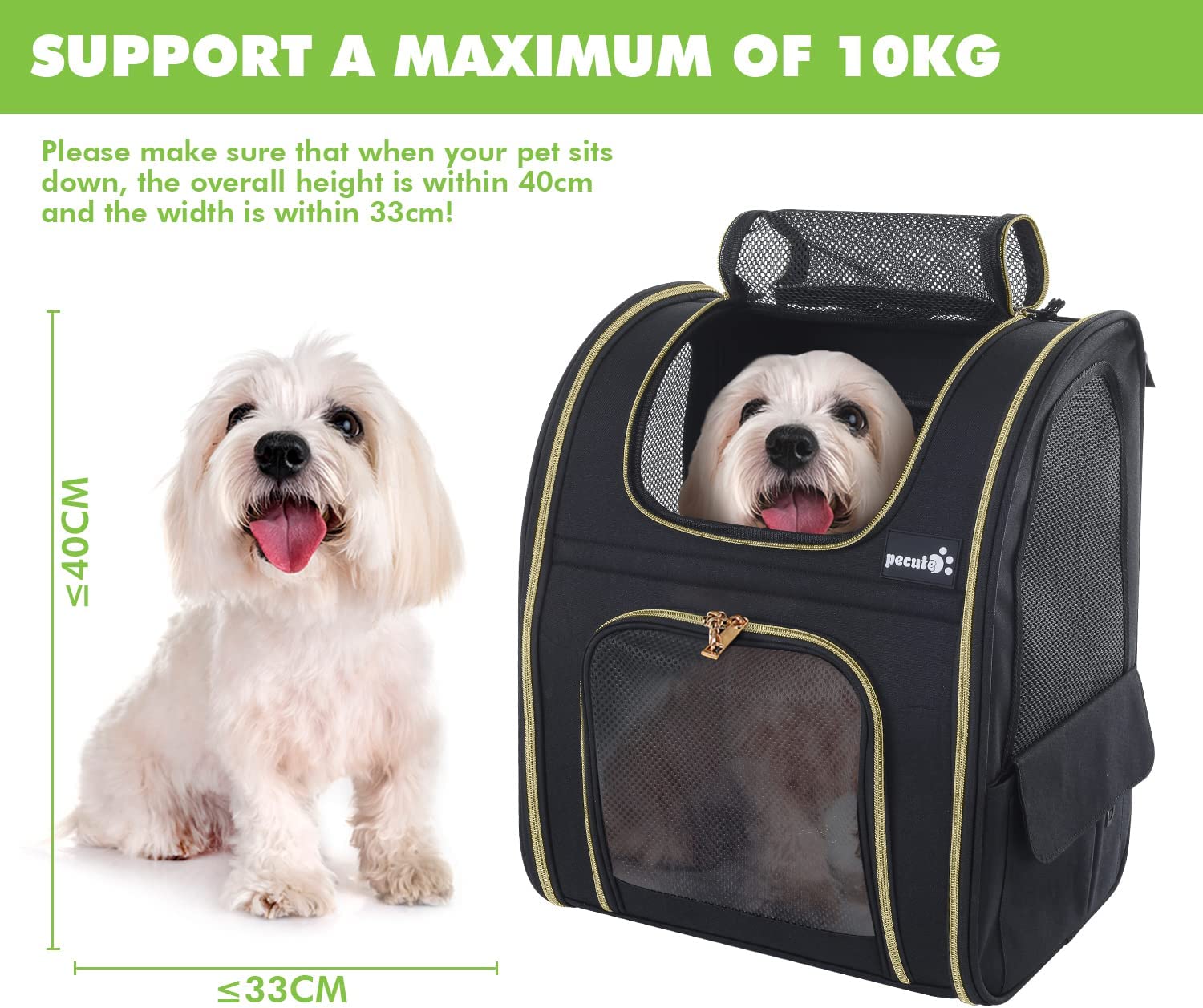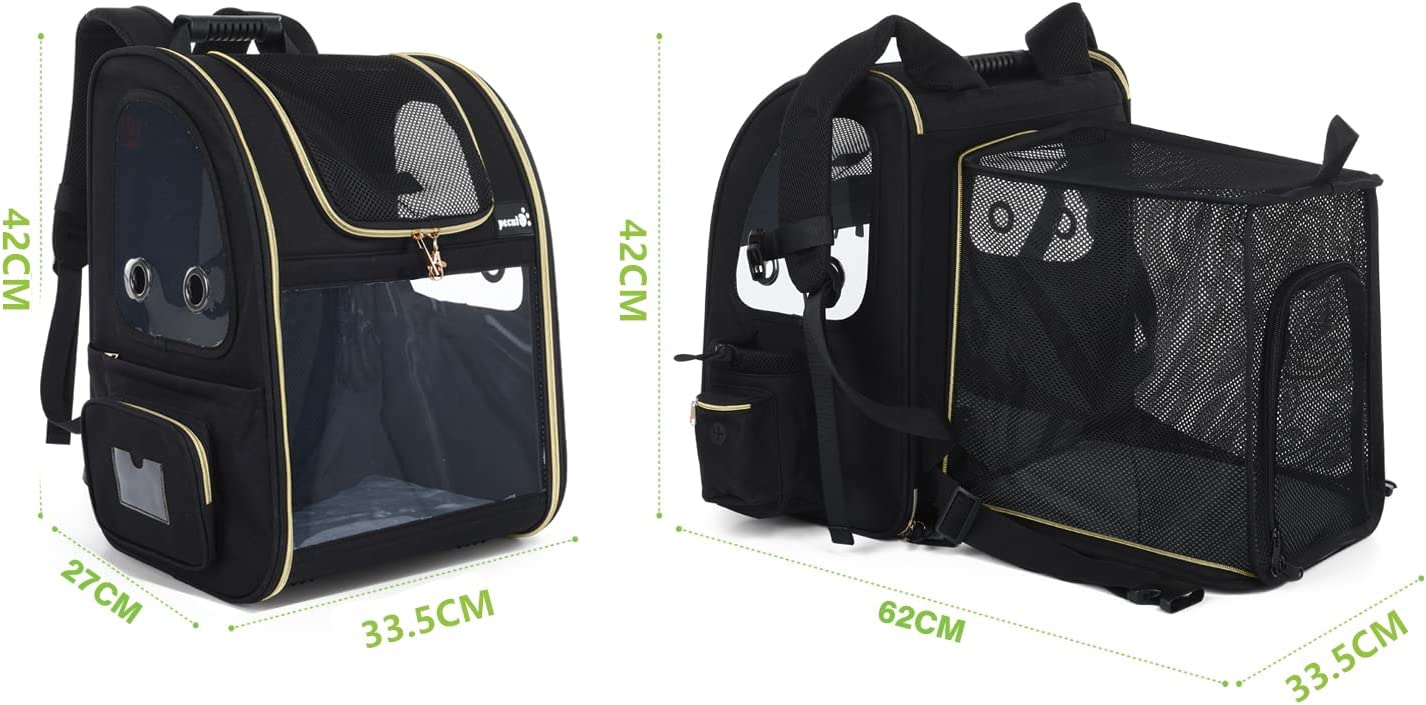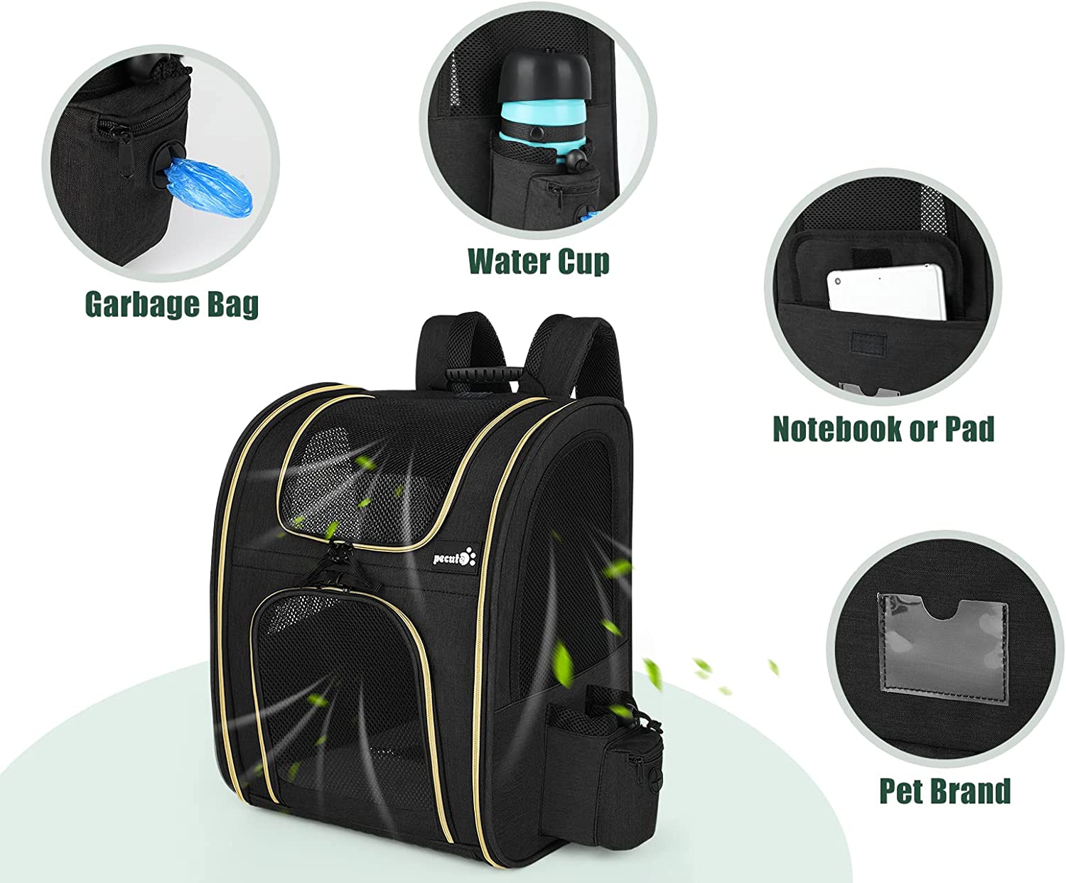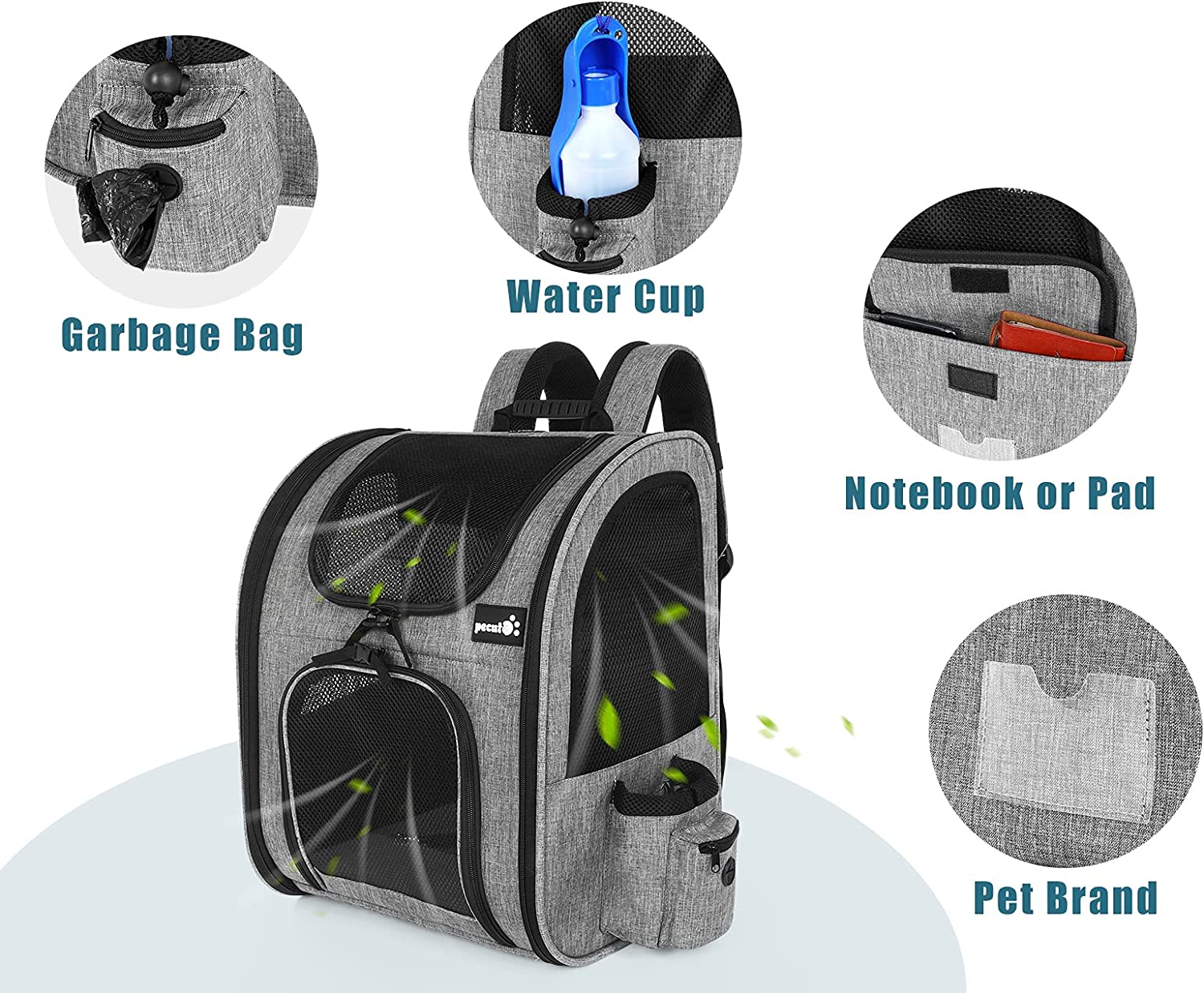 Pecute Pet Carrier Backpack, Dog Carrier Backpack, Expandable with Breathable Mesh for Small Dogs Cats Puppies, Pet Backpack Bag for Hiking Travel Camping Outdoor Hold Pets Up to 18 Lbs