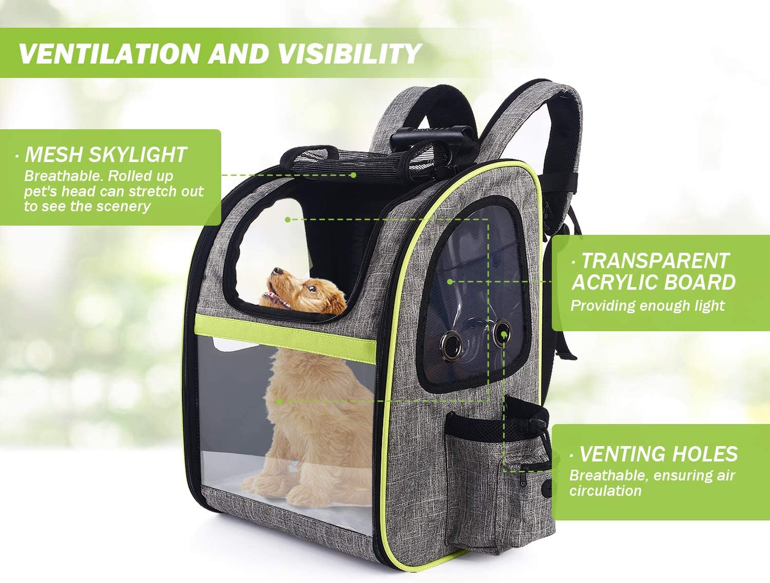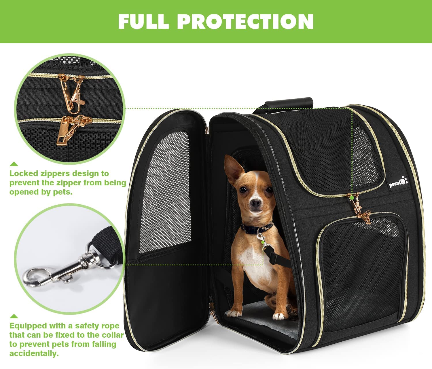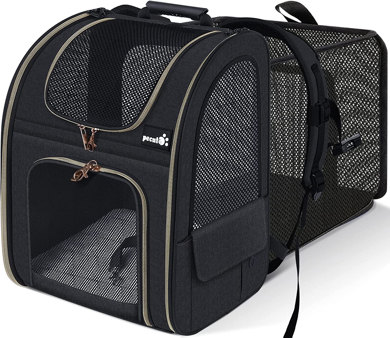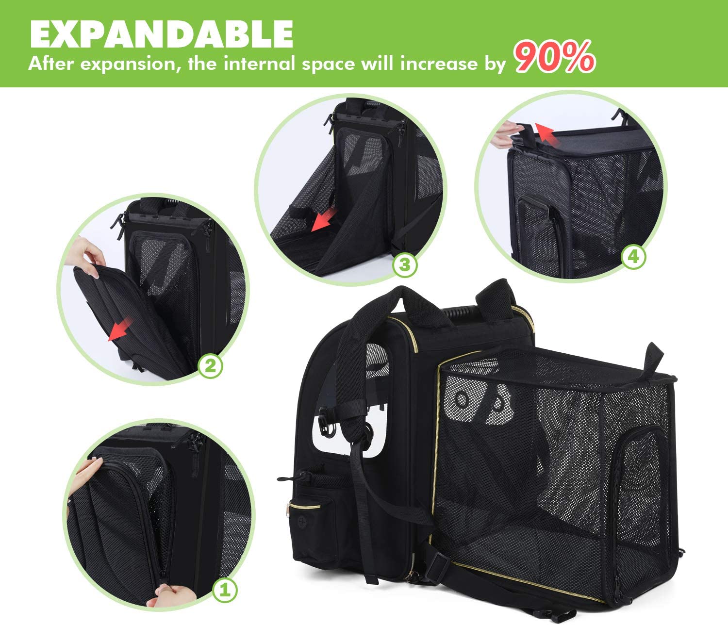 Pecute Pet Carrier Backpack, Dog Carrier Backpack, Expandable with Breathable Mesh for Small Dogs Cats Puppies, Pet Backpack Bag for Hiking Travel Camping Outdoor Hold Pets Up to 18 Lbs