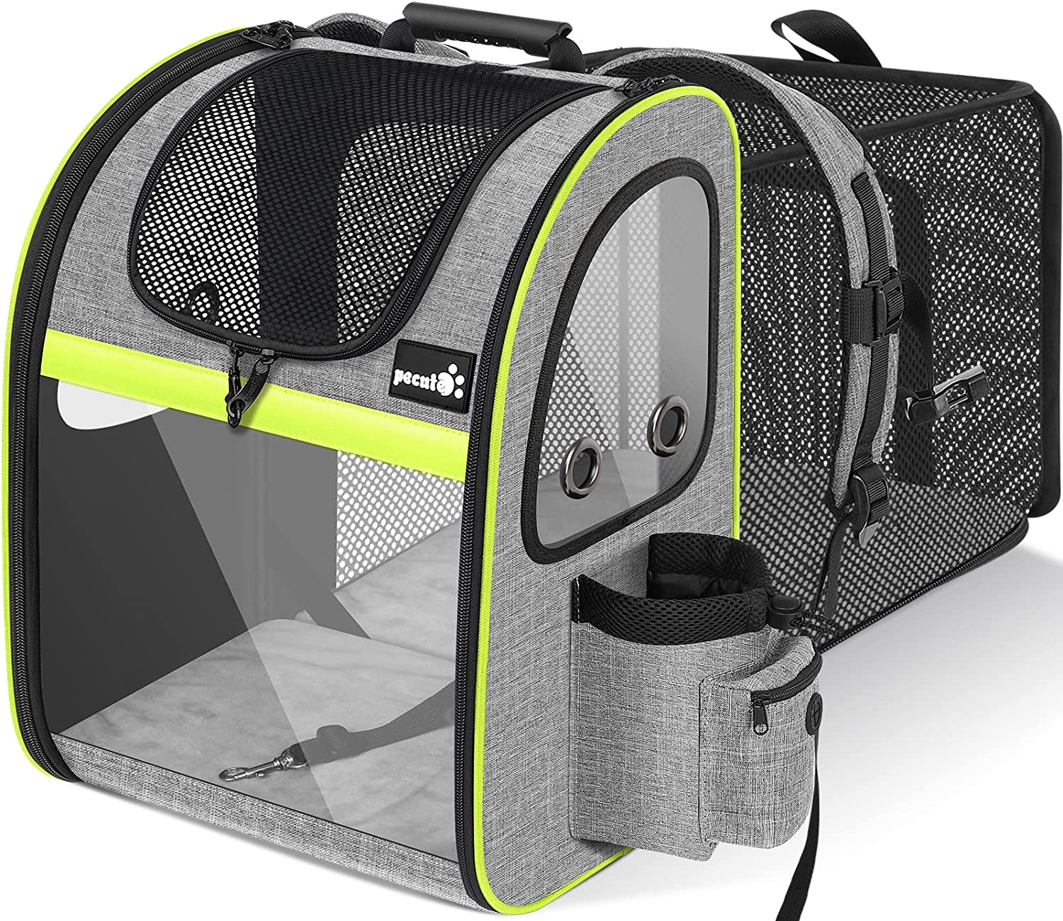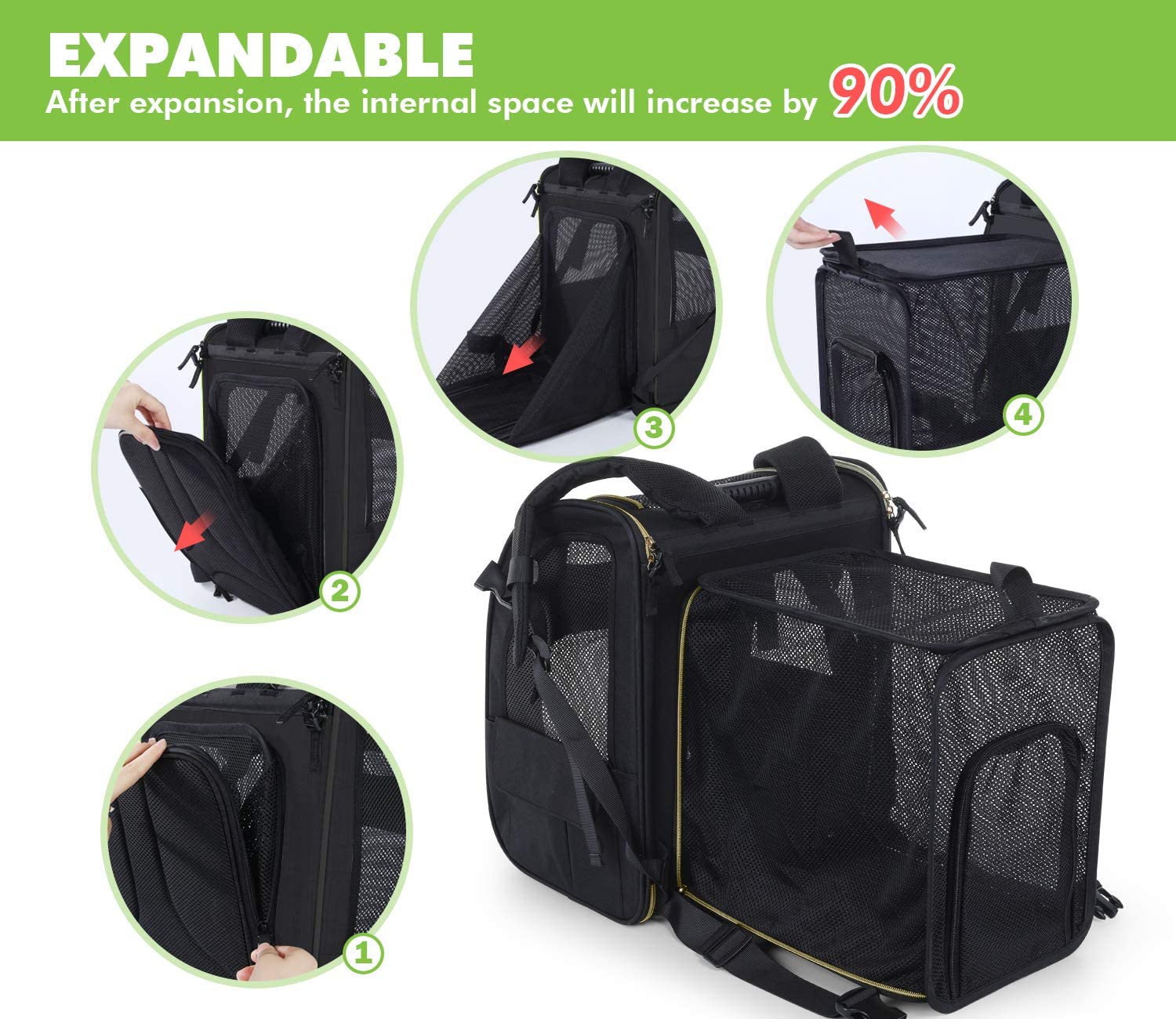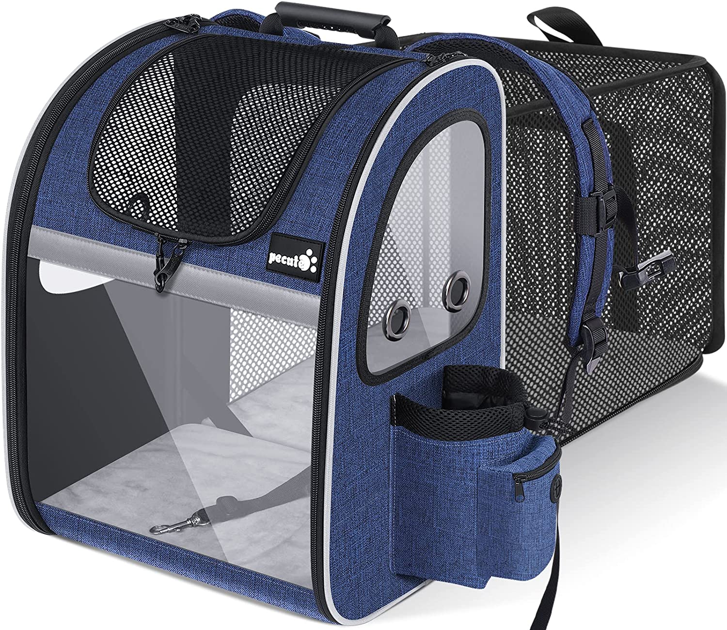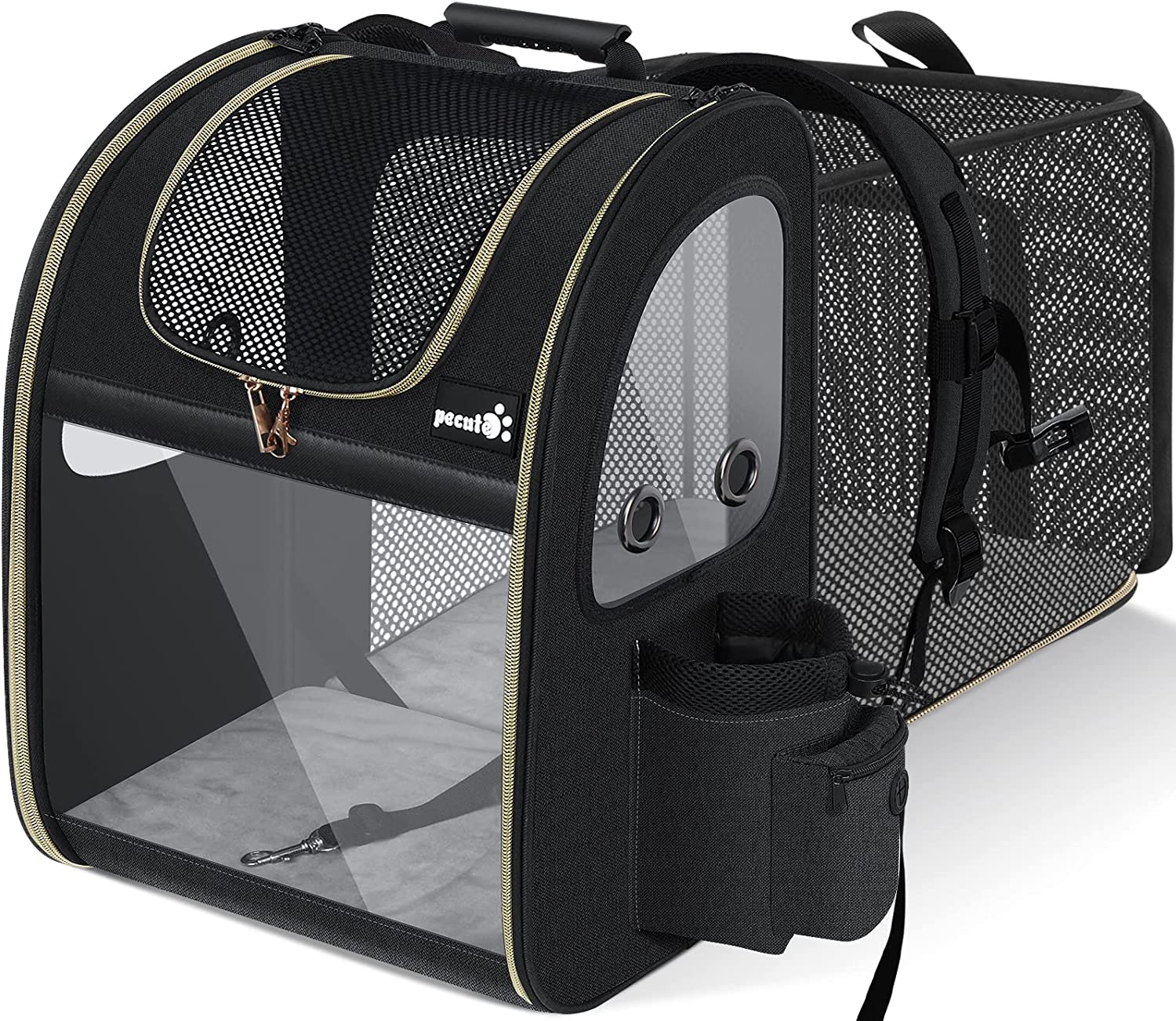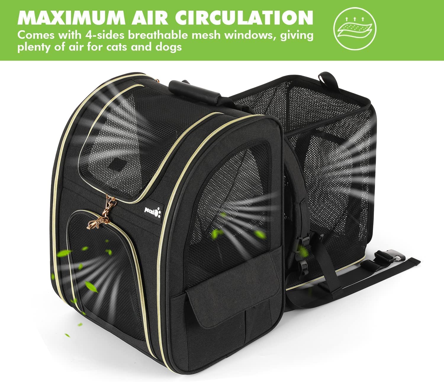 Pecute Pet Carrier Backpack, Dog Carrier Backpack, Expandable with Breathable Mesh for Small Dogs Cats Puppies, Pet Backpack Bag for Hiking Travel Camping Outdoor Hold Pets Up to 18 Lbs