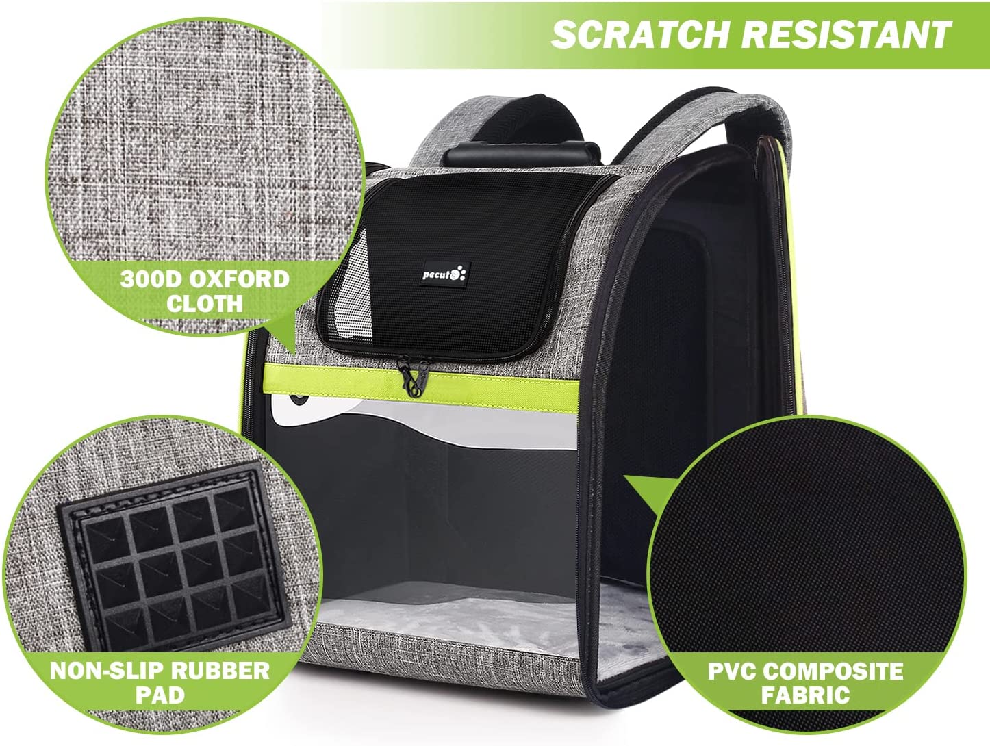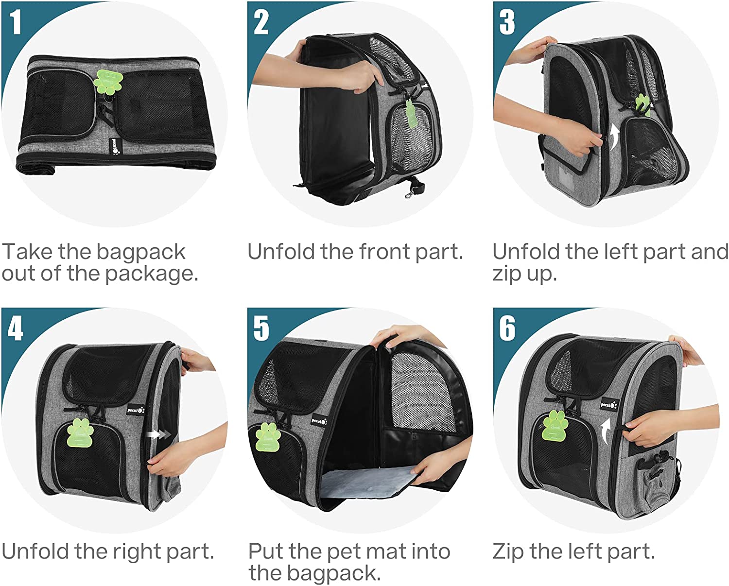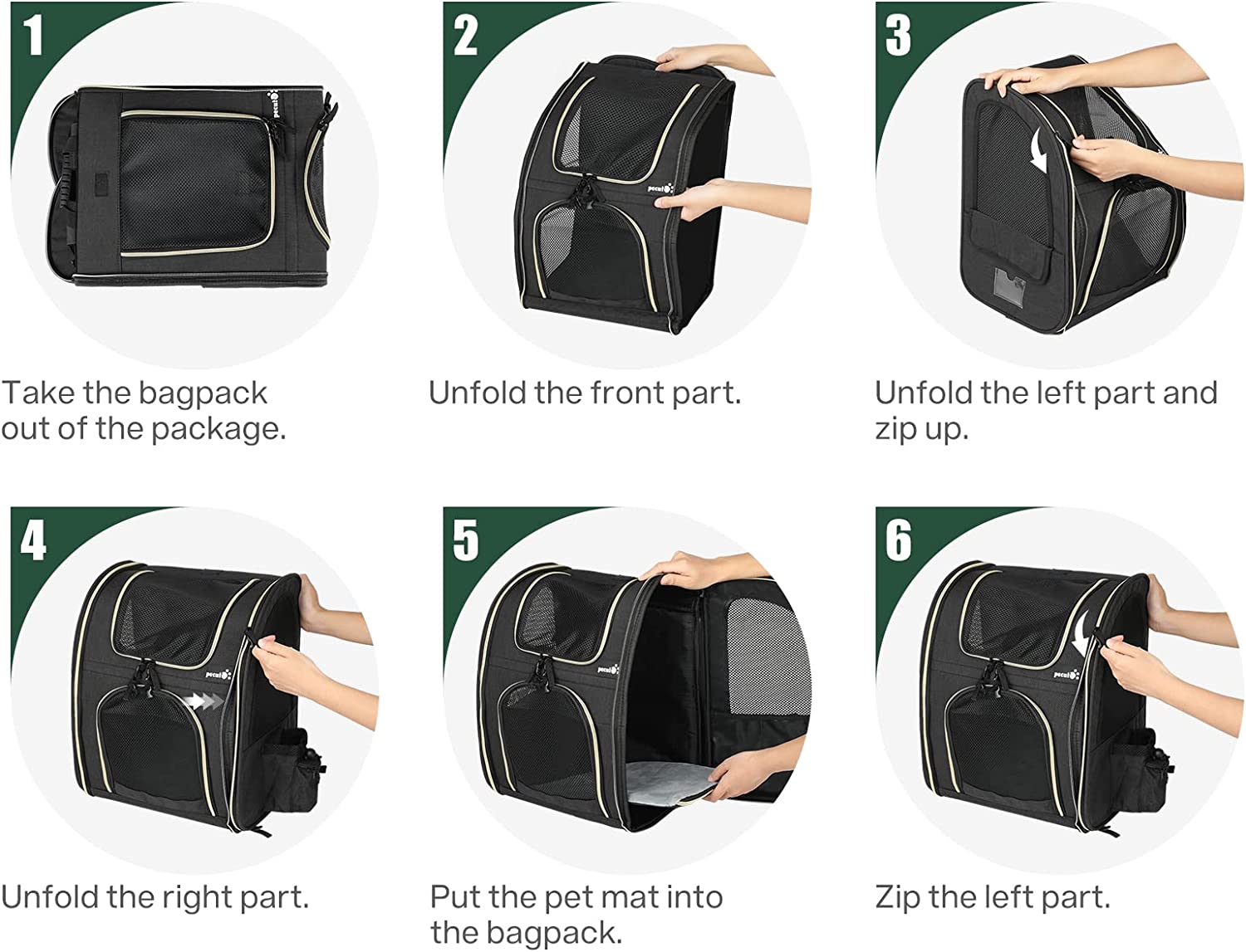 • ?【 COMFORT & EASE 】: The pet backpack carrier offers multiple ways to let your pet in and out with ease. For extra comfort, pet cushions are used on the bottom inside the bag, giving your furry friend the perfect resting spot while on the go. It can be removed and washed separately.