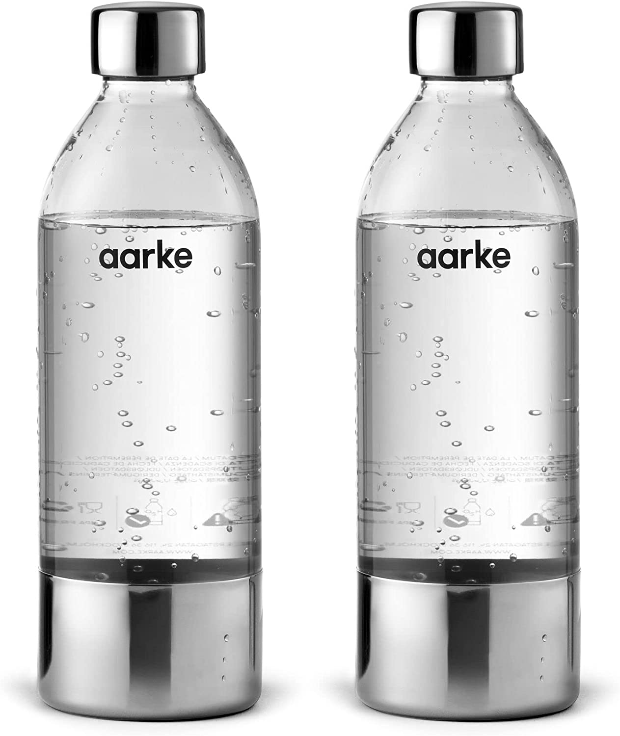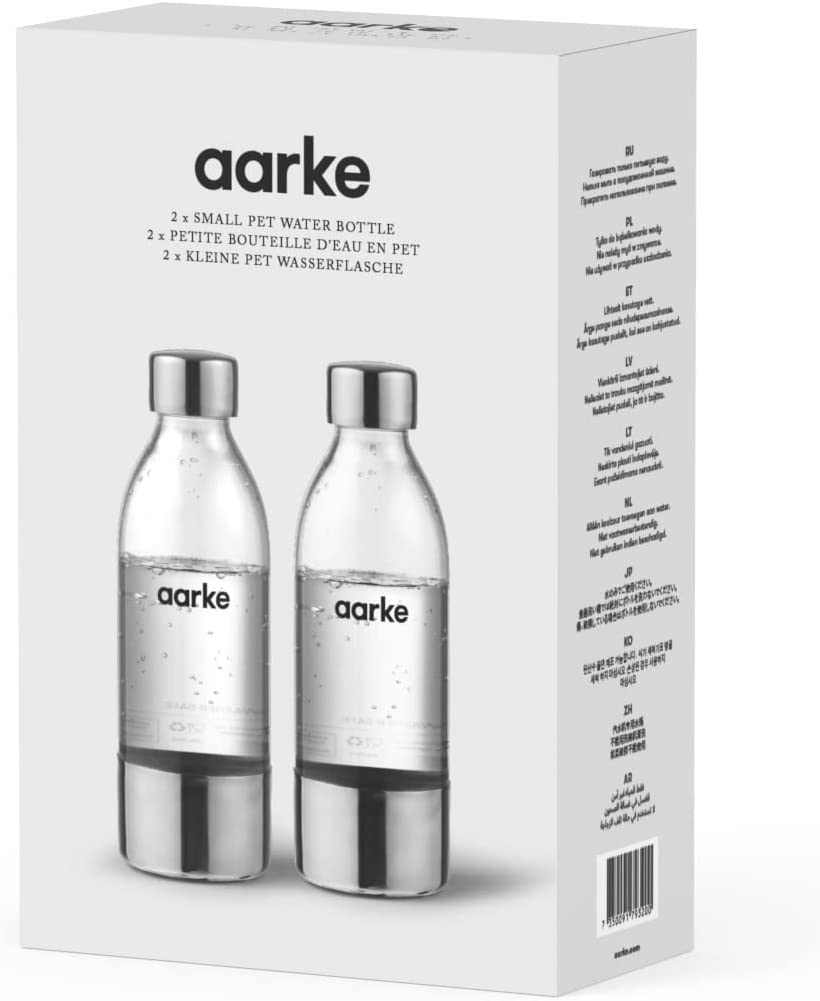 aarke Pack of 2 small PET bottles for carbonator 3, BPA-free with stainless steel details, 450 ml
