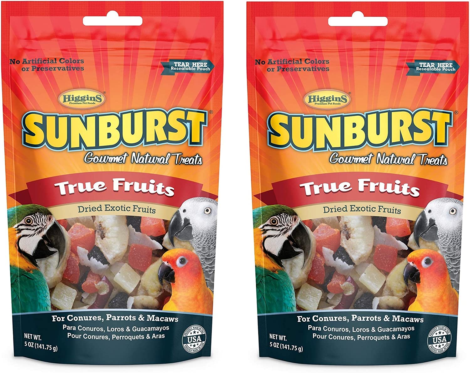 Higgins 2 Pack of Sunburst Gourmet Natural Bird Treats, 5 Ounces Each, True Fruits Flavor, for Conures Parrots and Macaws