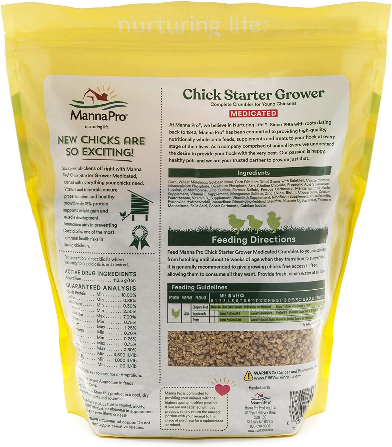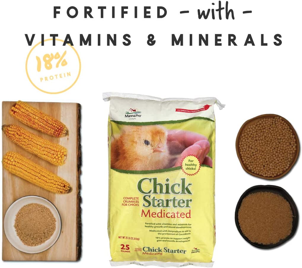 • FORTIFIED: Manna Pro Medicated Chick Starter Grower is crafted with vitamins & minerals for healthy growth and sound development