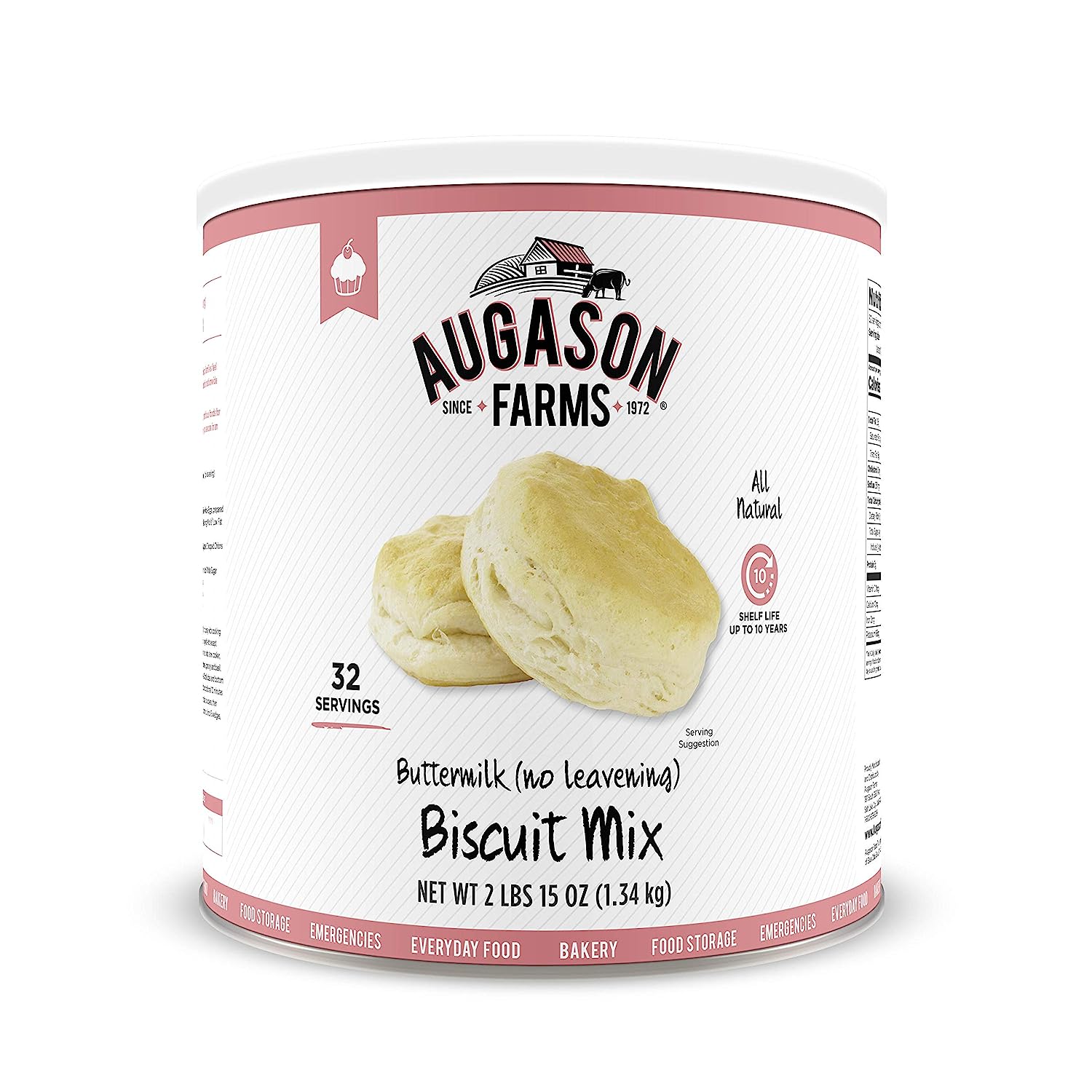 The Augason Farms Buttermilk (No Leavening) Biscuit Mix 14 oz #10 Can is blended from top quality ingredients for baking those perfect, flaky biscuits everyone loves. This amazingly versatile mix can also be used to make mouthwatering dumplings, breakfast sandwiches, pie crusts, pigs in blankets, pizza crust, Parmesan bread, biscuit pudding—even lip-smacking cinnamon rolls. Of course, an all-time favorite is biscuits with sausage gravy, a welcome dish anytime, making this mix handy for everyday use, as well as emergency food storage. This is an all natural product that consists of 31 Servings and 5,580 Calories, with a shelf-life of up to 10 years. It's perfect for Food Storage, Emergencies, Survival, Camping, and Everyday Use! Make the wise decision and let Augason Farms give you a peace of mind that's as indispensable as it is delicious. Family owned and operated since 1972, Augason Farms believes that great taste is a tradition worth preserving. They'll provide you with delicious peace of mind with their food essentials. Please discard oxygen absorber after opening. Best when stored in a cool dry place at temperatures between 55 Degree and 70 Degree F (ideal humidity 15%).