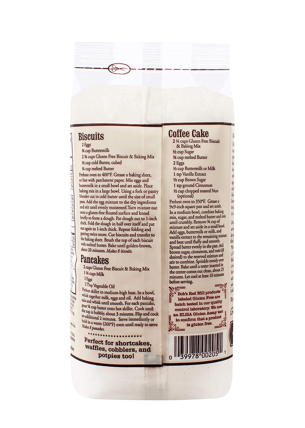 Bob's Red Mill Gluten Free Biscuit and Baking Mix is a convenient base for your favorite homemade gluten free treats. It's not just for biscuits - try this mix for pie crusts, pancakes, scones, and shortcakes too! We’ve included Xanthan Gum in the mix, so all you need from your kitchen is butter and water or milk for simple biscuits. One packages makes about 18 biscuits. Like all of our gluten free-labeled products, this product is processed in a dedicated gluten free facility and R5-ELISA tested to confirm its gluten free status.