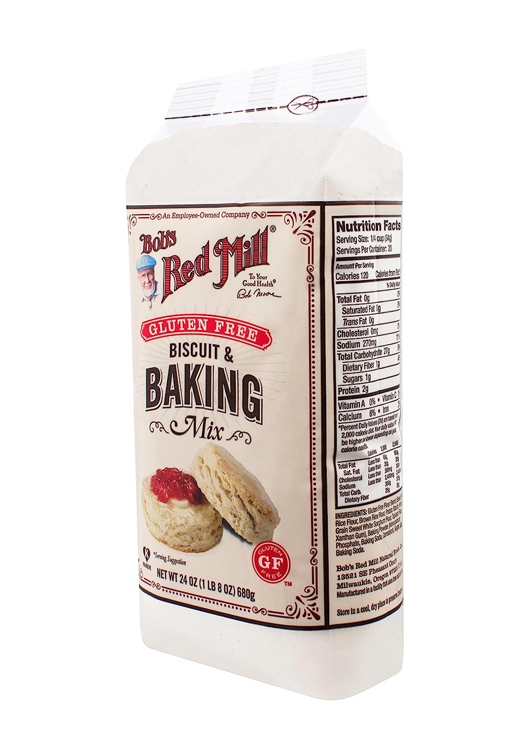 Bob’s Red Mill gluten-free biscuit and baking mix contains white rice and garbanzo bean flour. Use it to bake superb biscuits, shortcake, pancakes, and even pie crust. This mix is specially designed for those sensitive to wheat or gluten. This is sold in pack of four 24-ounce bags.