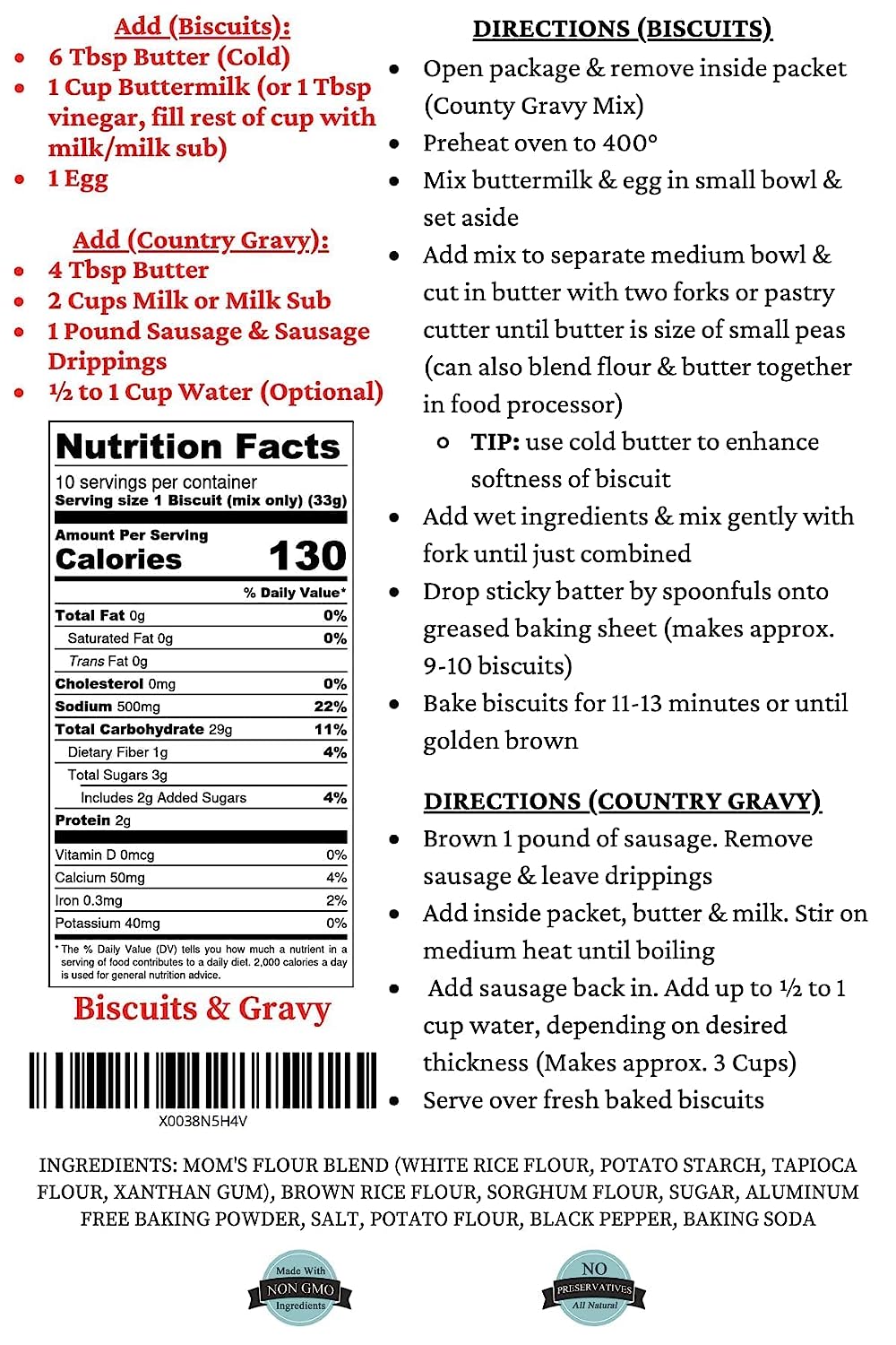 Our Biscuits and Gravy will immediately be a family favorite! Enjoy easy to make, warm, fresh from the oven buttermilk biscuits covered in a rich creamy country gravy - that just happens to be both gluten-free and dairy free. Mom’s Place biscuits take a matter of minutes to throw together and will make 8-9 good sized buttermilk biscuits. Combine our soft flakey biscuits and rich country gravy and this meal will be one that is requested over and over!
