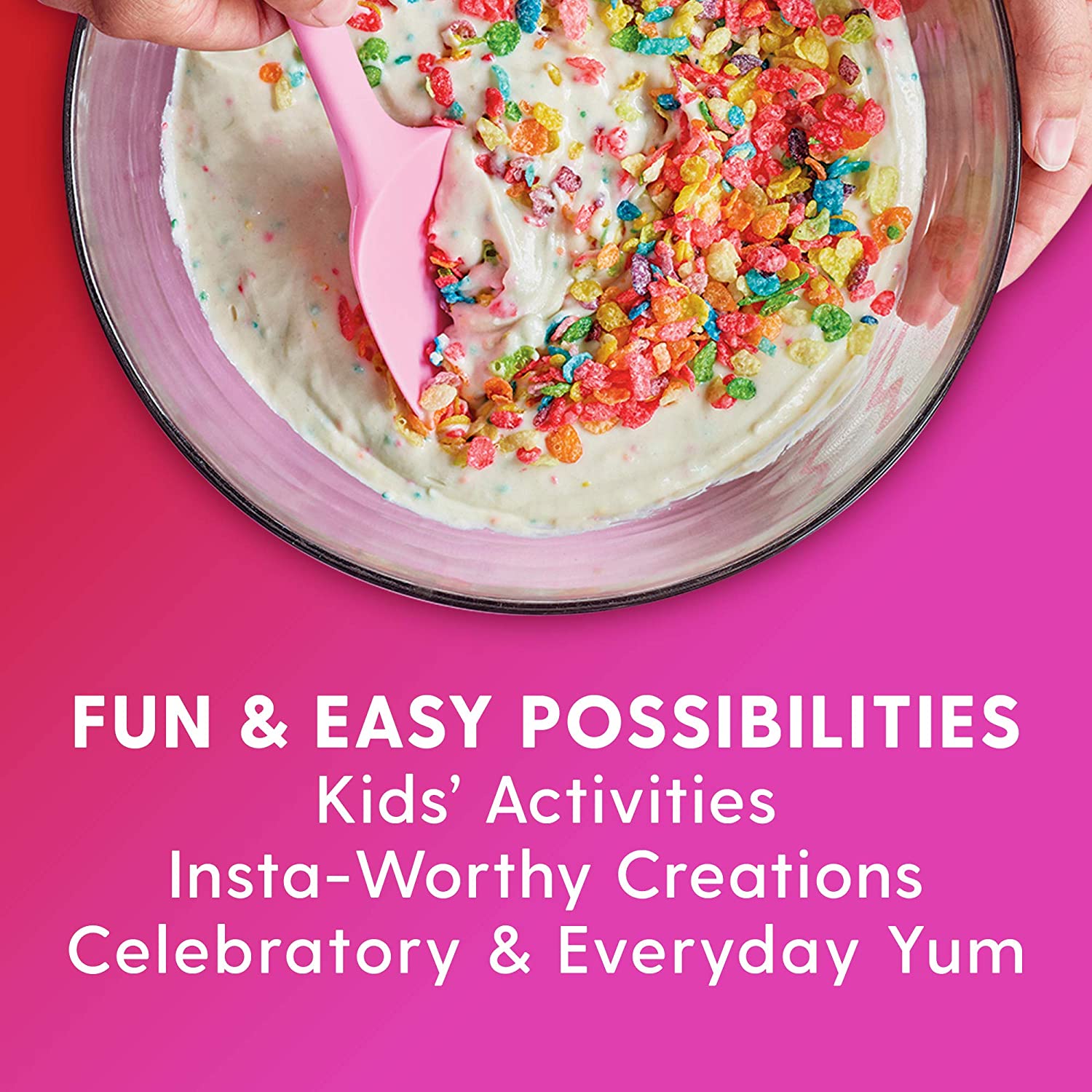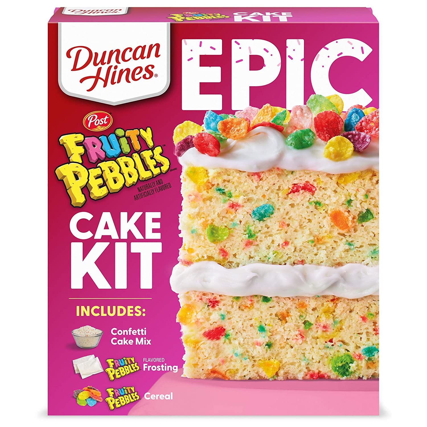 Make dessert epic with the Duncan Hines Epic Baking Kit, Fruity Pebbles Naturally and Artificially Flavored Cake Mix Kit. This deliciously decadent baking set includes: confetti cake mix, Fruity Pebbles flavored frosting, Fruity Pebbles cereal and detailed directions on how to make a yummy dessert everyone will enjoy. Pick up this Duncan Hines baking mix kit today, and create something epic.