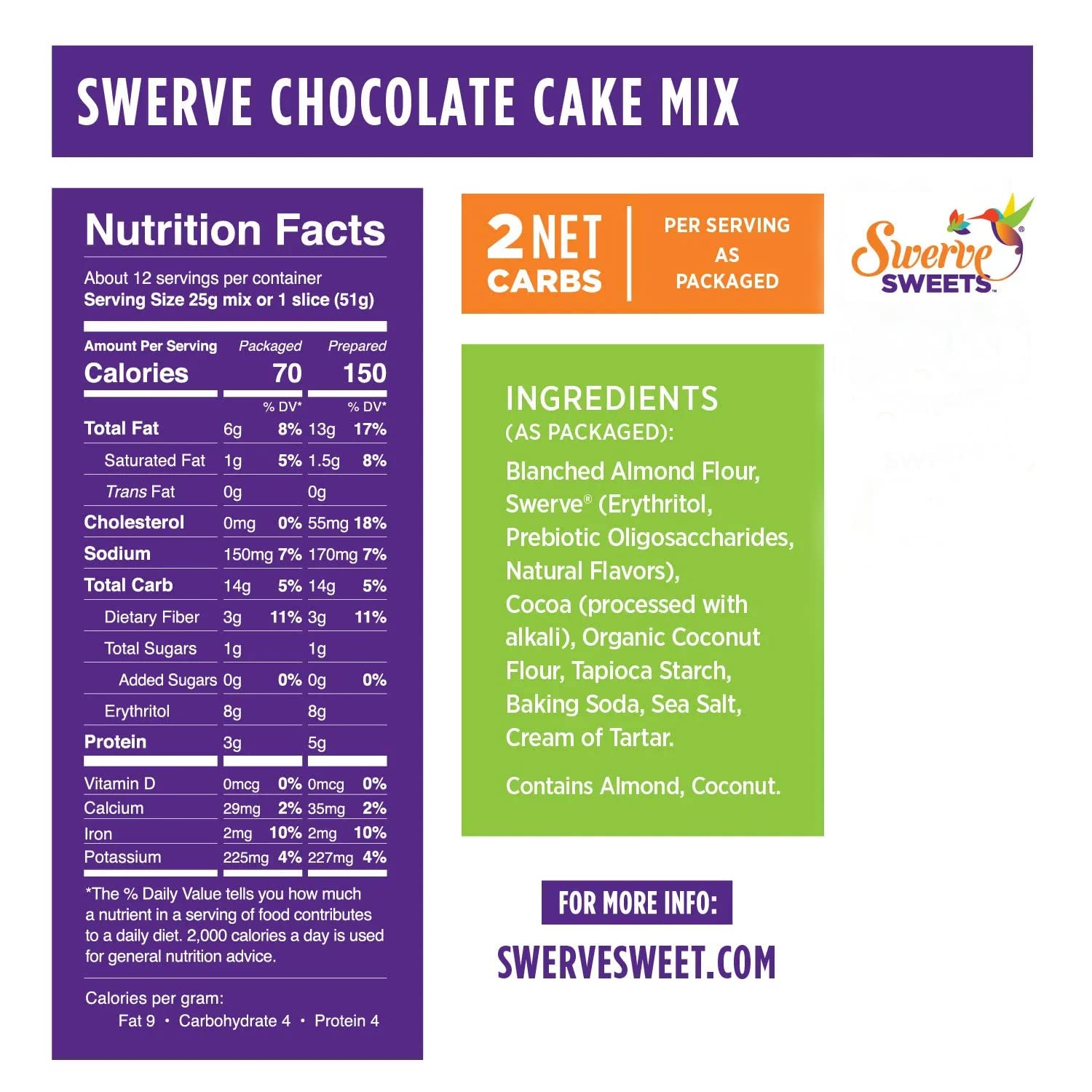 Swerve Sweets Chocolate Cake Baking Mix - Keto Diet Friendly, Low Carb, Gluten Free, Easy to Make and Just 3g Net Carbs, 10.6 Oz - 2 Pack