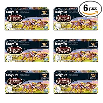 Celestial Seasonings Energy Black Tea, Caffeinated, 12 Tea Bags Box, (Pack of 6)