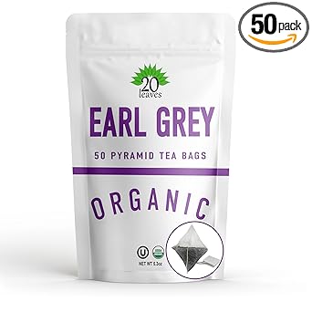 Earl Grey Black Tea - 100% Certified Organic - 50 Pyramid Tea Bags Sachets in Resealable Bag