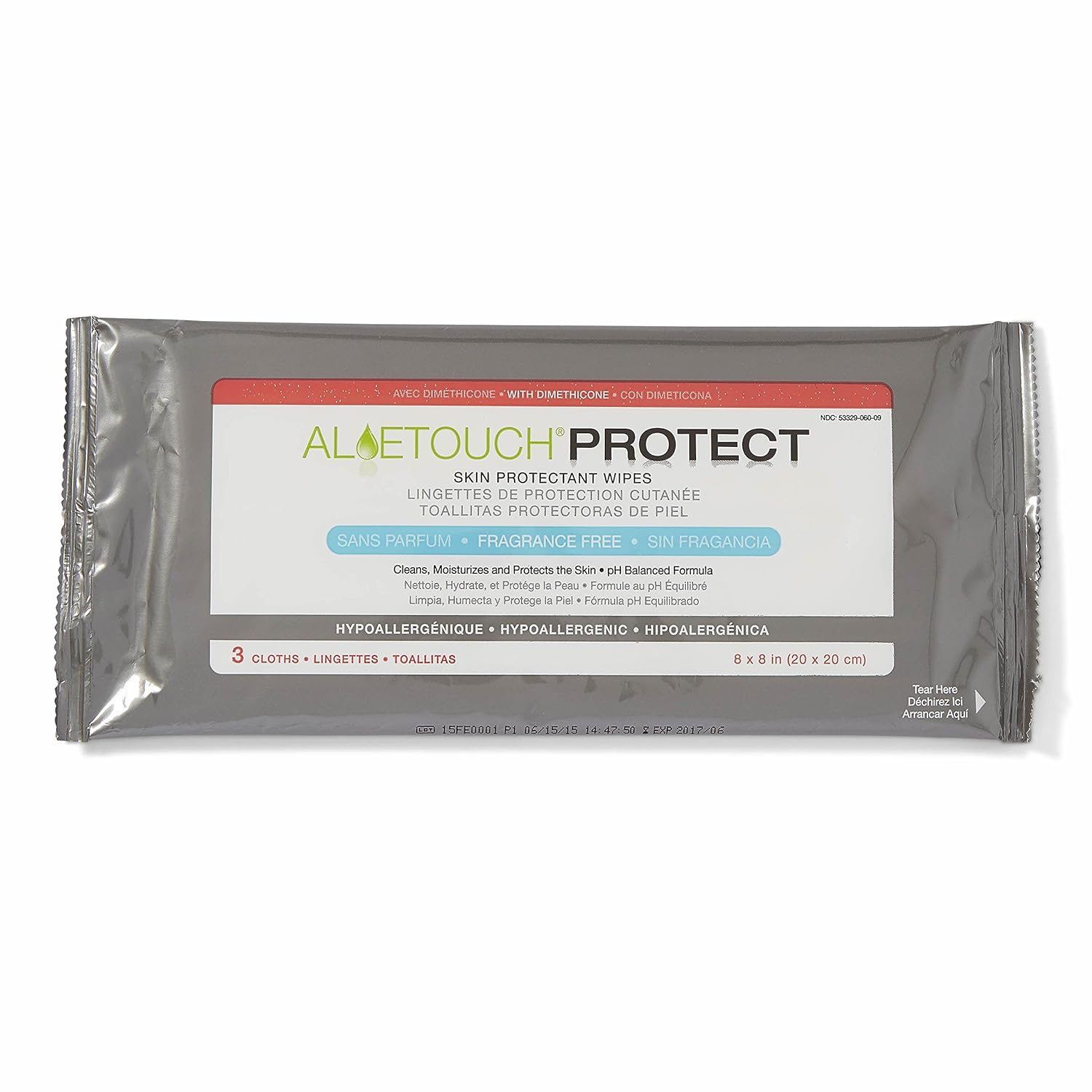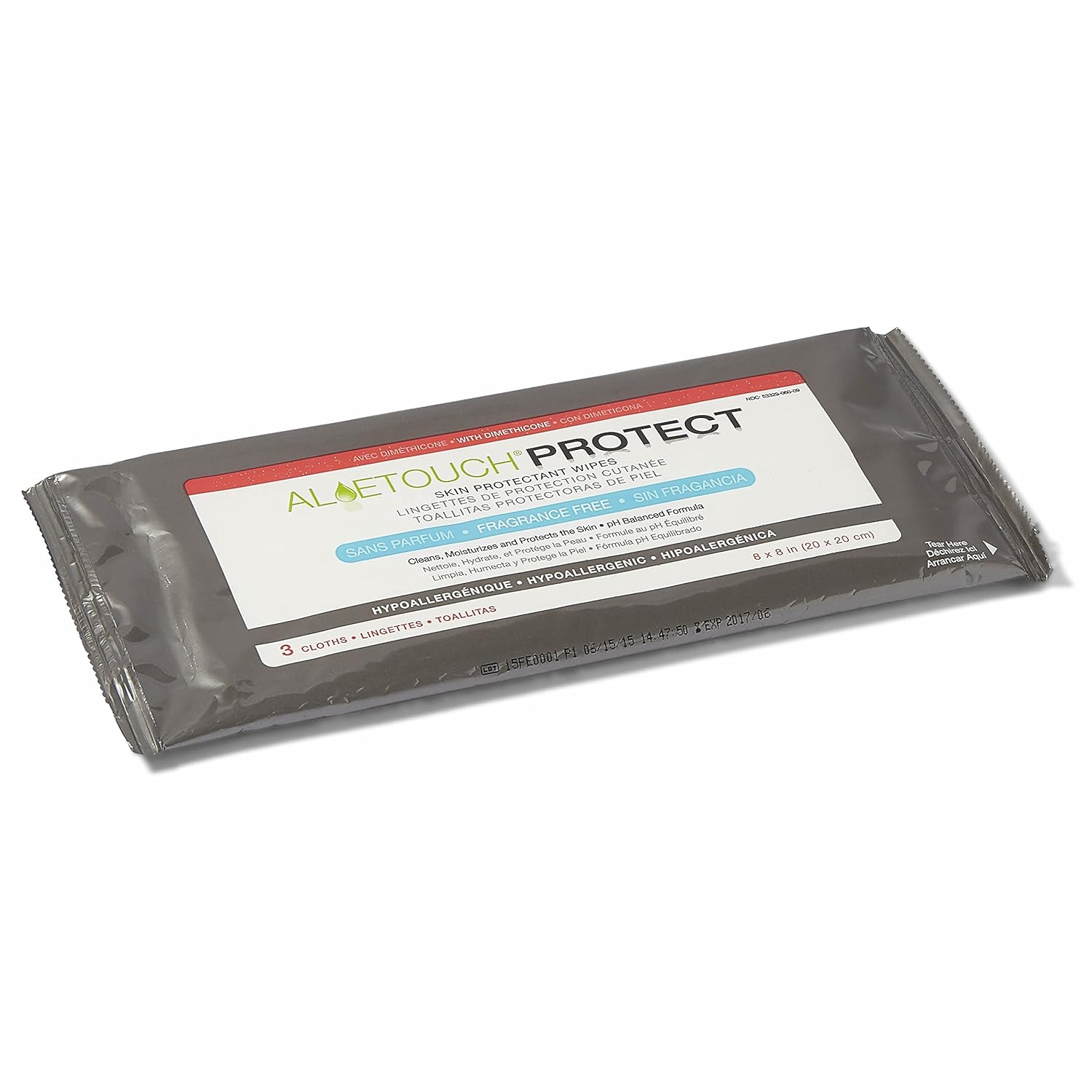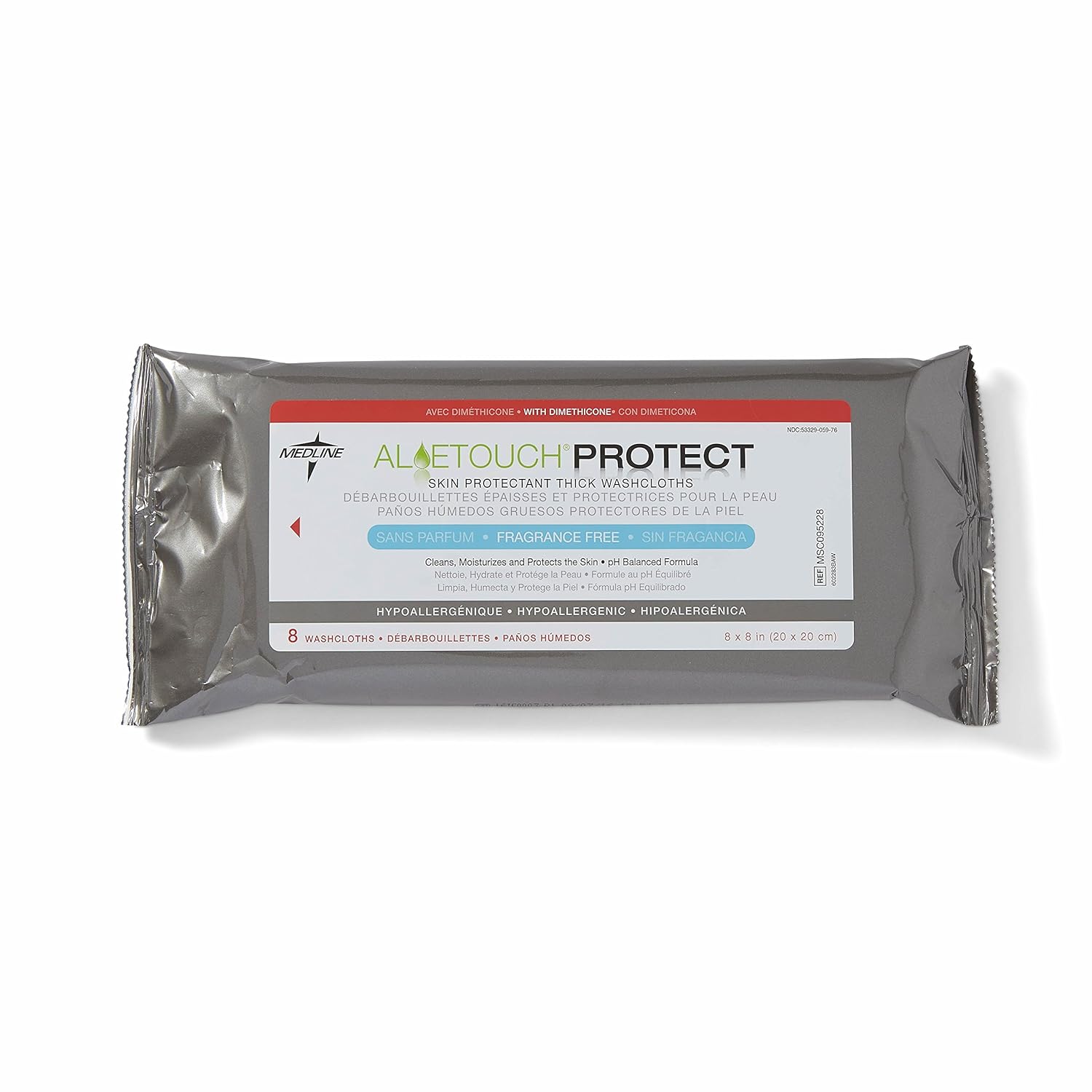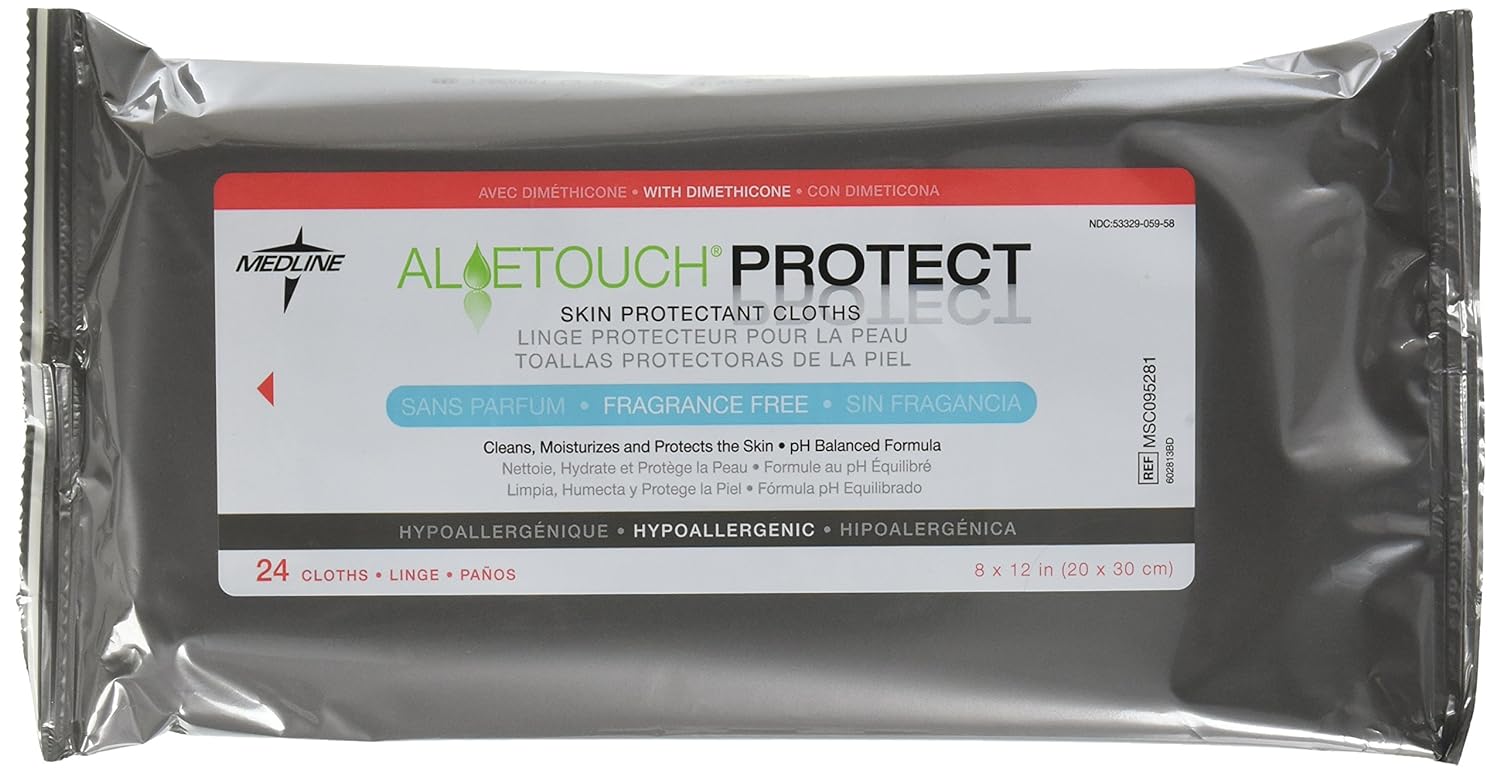 Medline MSC095281 AloeTouch Protect Dimethicone Skin Protectant Wipe, Hypoallergenic, Fragrance-Free, Pack of 576