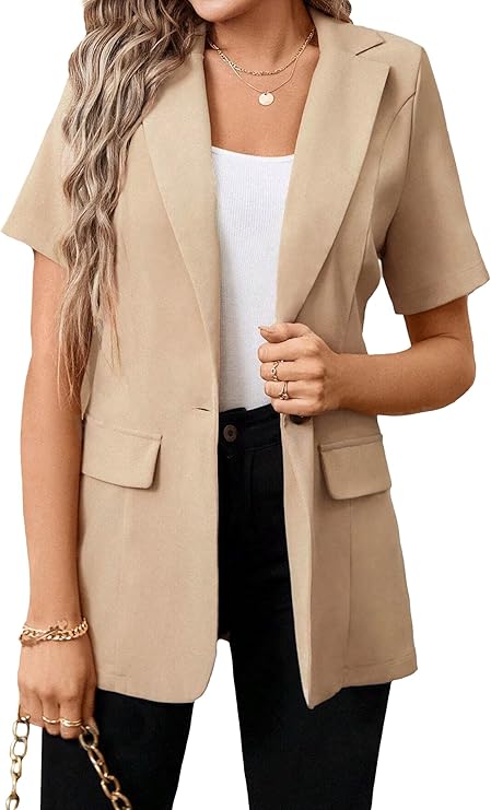 Blazers Jackets for Women 2024 Summer Short Sleeve Business Casual Outfits Lapel Button Work Office Suit Blazer