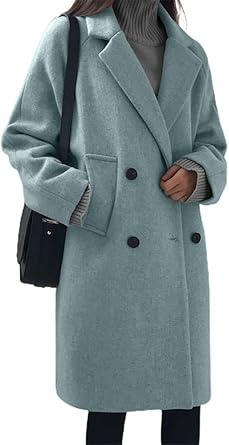 Chouyatou Women's Casual Notch Lapel Double Breasted Warm Pea Coat Overcoat