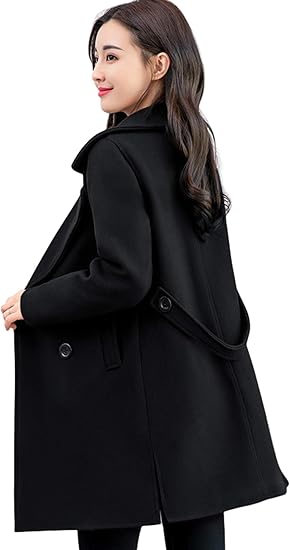 Chouyatou Women's Elegant Lapel Collar Double Breasted Wool Blend Pea Coat with Belt