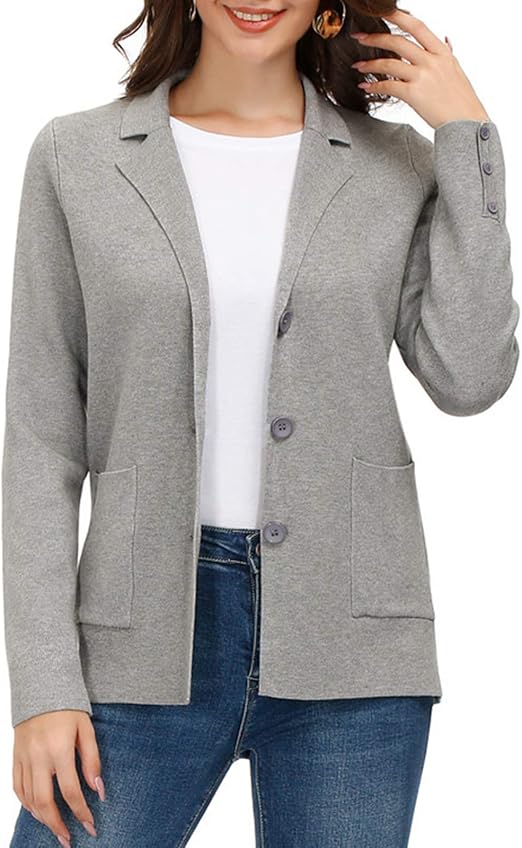 Women's Long Sleeve Casual Blazer Work Office Bussiness Jacket with Pocket