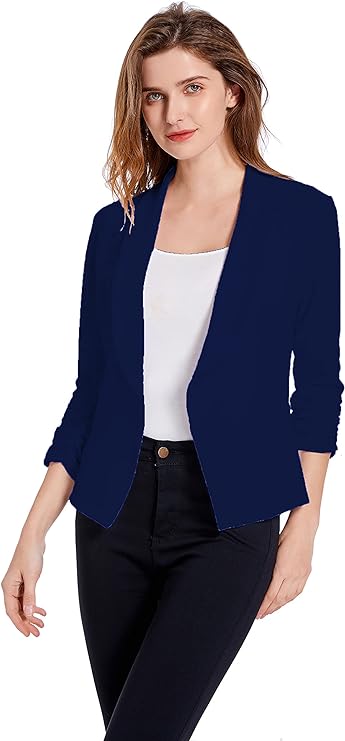 Women's Soft Stretchy Lightweight Cardigan Blazer One Button 3/4 Ruched Sleeve Business Casual Blazer Jackets