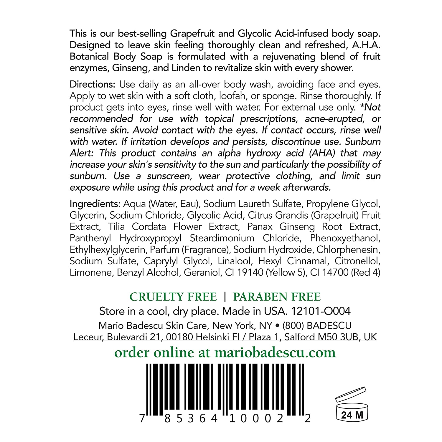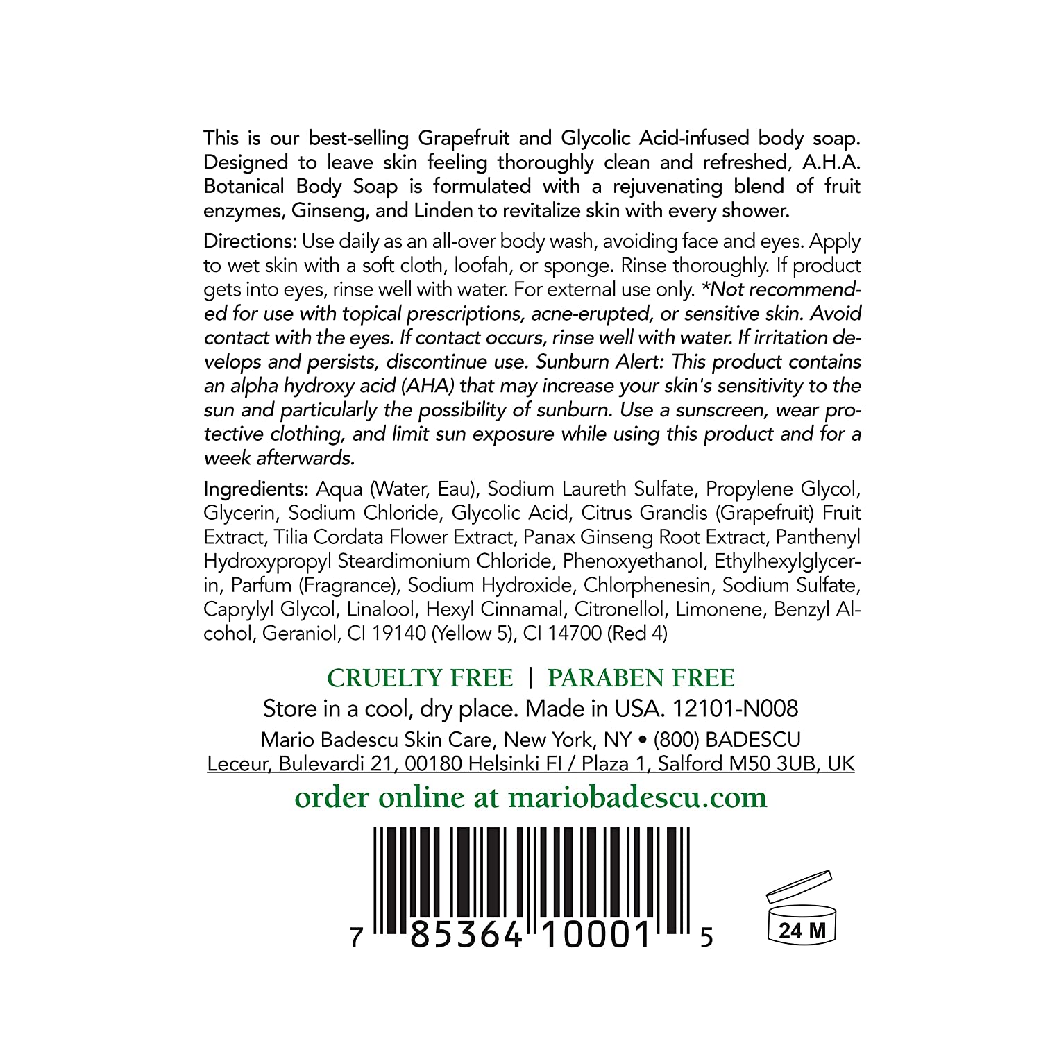 Mario Badescu AHA Botanical Body Wash Moisturizing, Clarifying and Gentle Exfoliating Body Wash for Brighter, Softer and Smoother Skin | Body Soap Infused with Glycolic Acid & Fruit Enzymes
