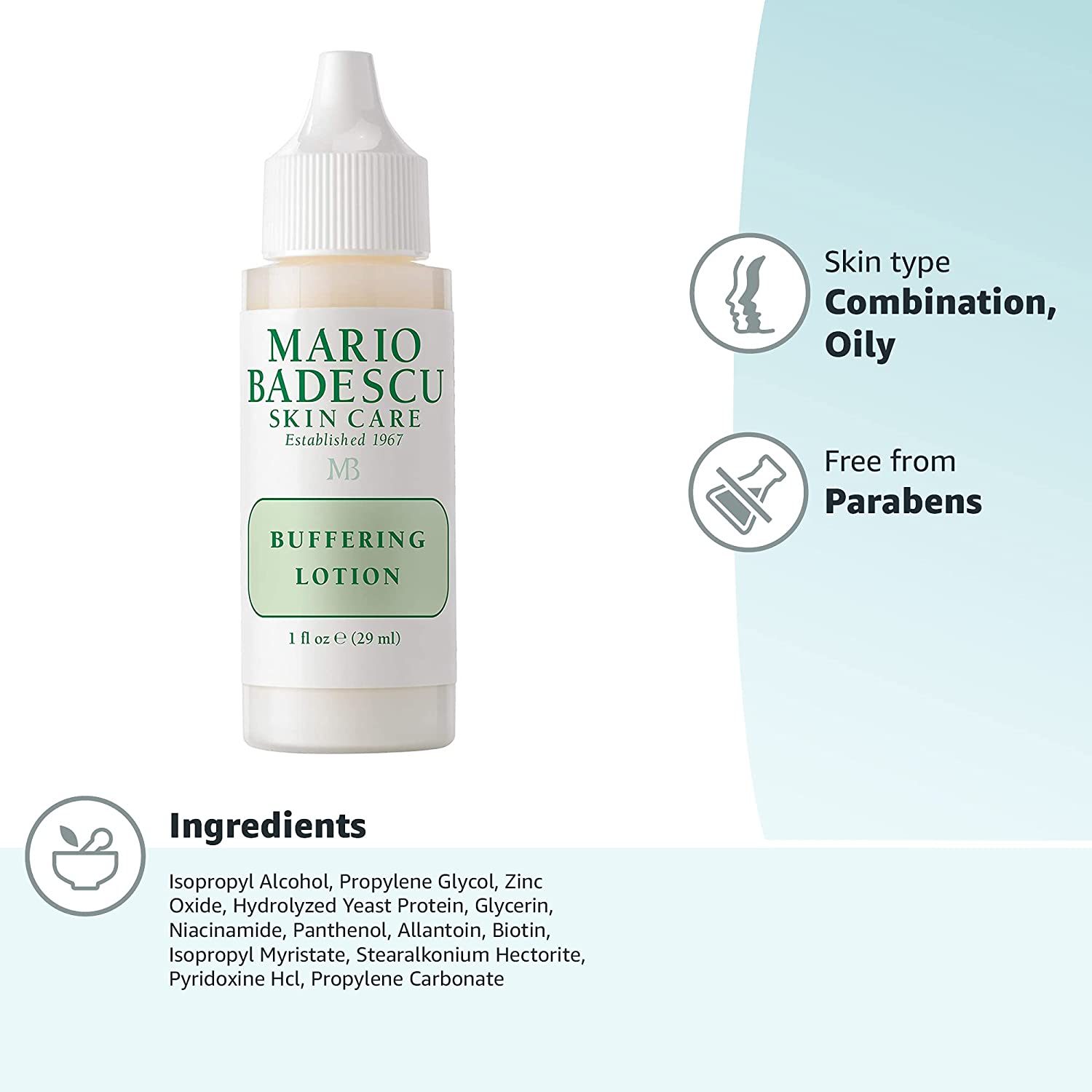 Mario Badescu Buffering Lotion for Combination & Oily Skin | Clarifying Gel-Serum that Tackles Clogged Pores | Formulated with Salicylic Acid and Glycerin | 1 FL OZ