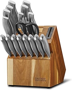 Chicago Cutlery Insignia Steel (18-PC) Kitchen Knife Block Set & Built-In Sharpener, Contoured Ergonomic Handles and Sharp Stainless Steel Professional Chef Knife Set & Scissors With Bottle Opener