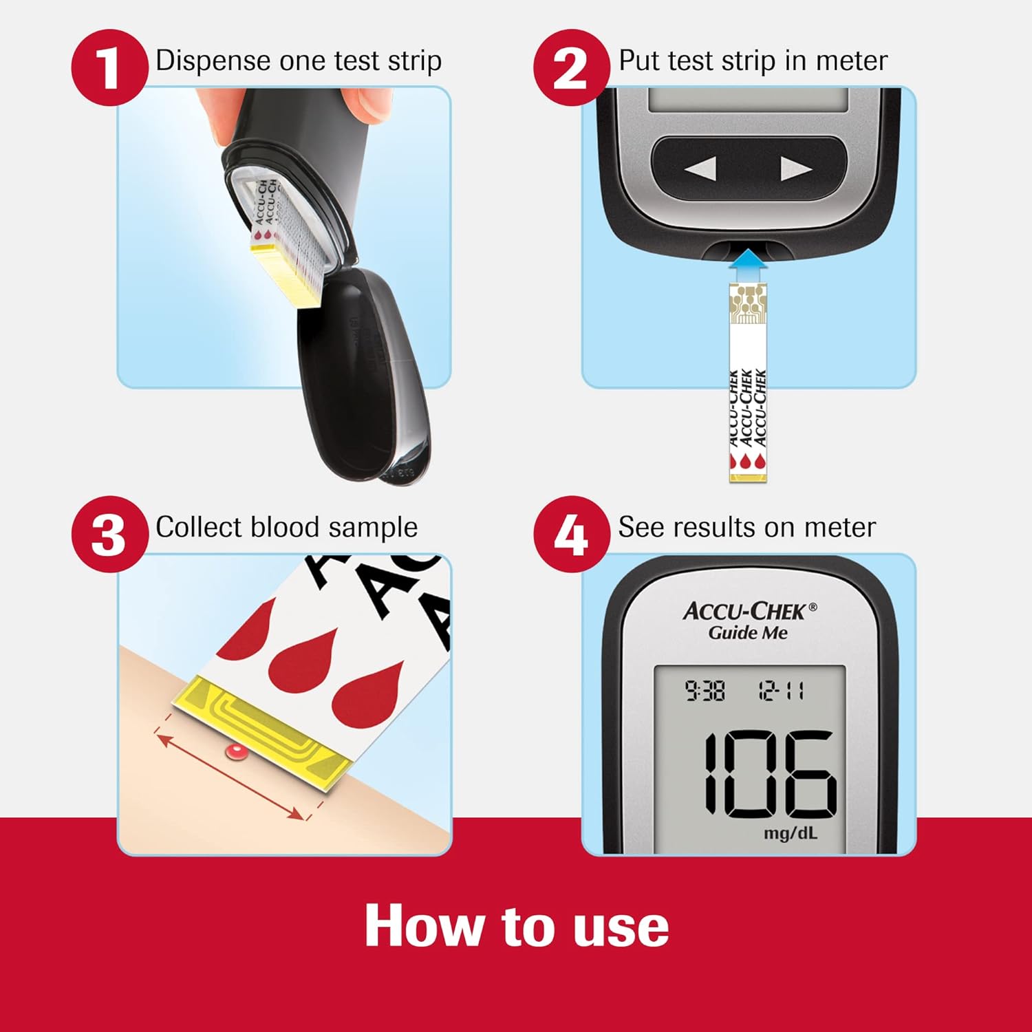• The Accu-Chek Guide platform is Accu-Chek's most accurate, ever; Only compatible with Accu-Chek Guide Test Strips; Includes meter and hard-shell case